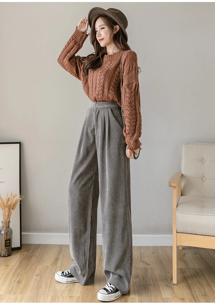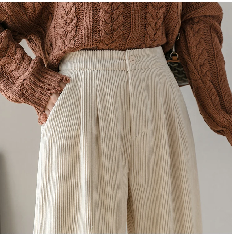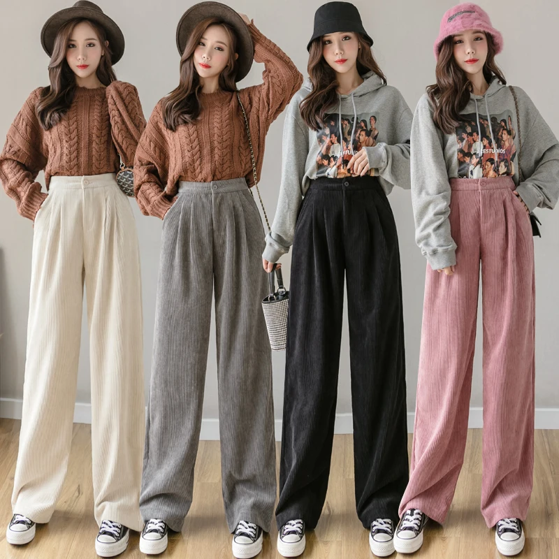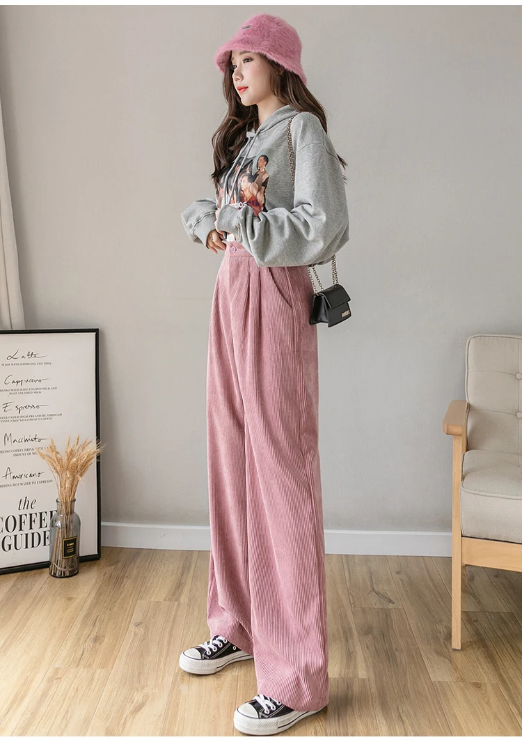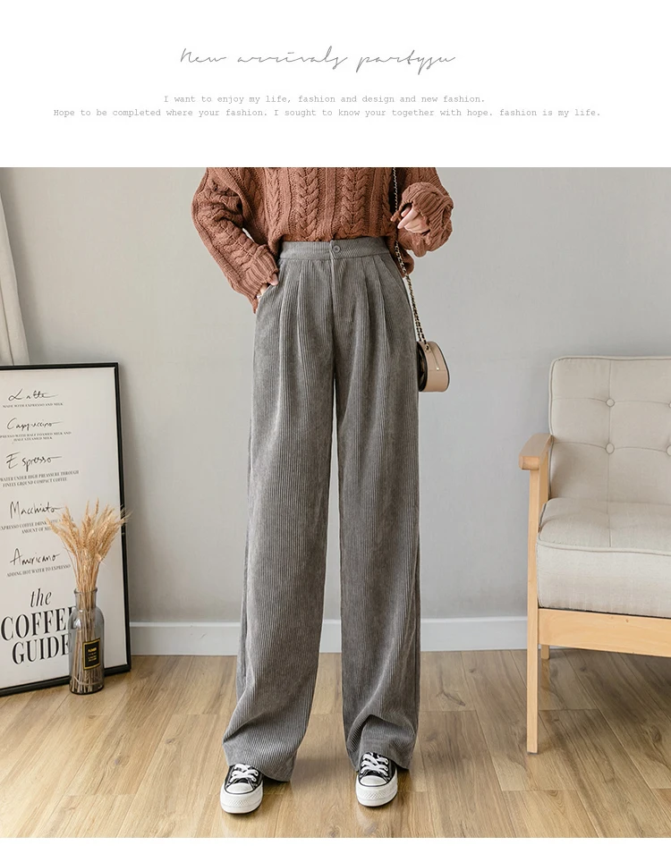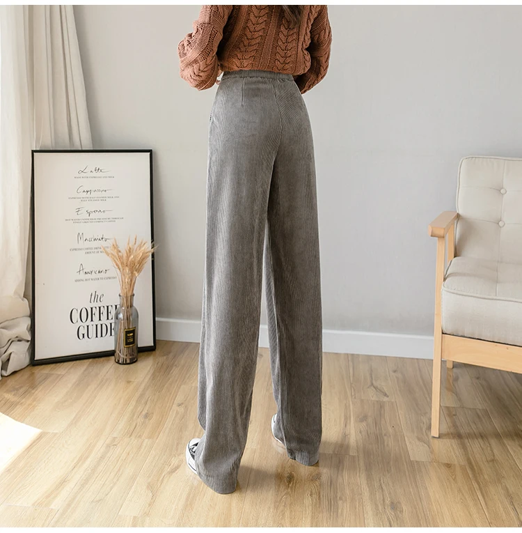 Женские вельветовые брюки с карманами, серые, бежевые, черные, розовые свободные брюки с высокой талией и широкими штанинами, новинка зимы 2020
