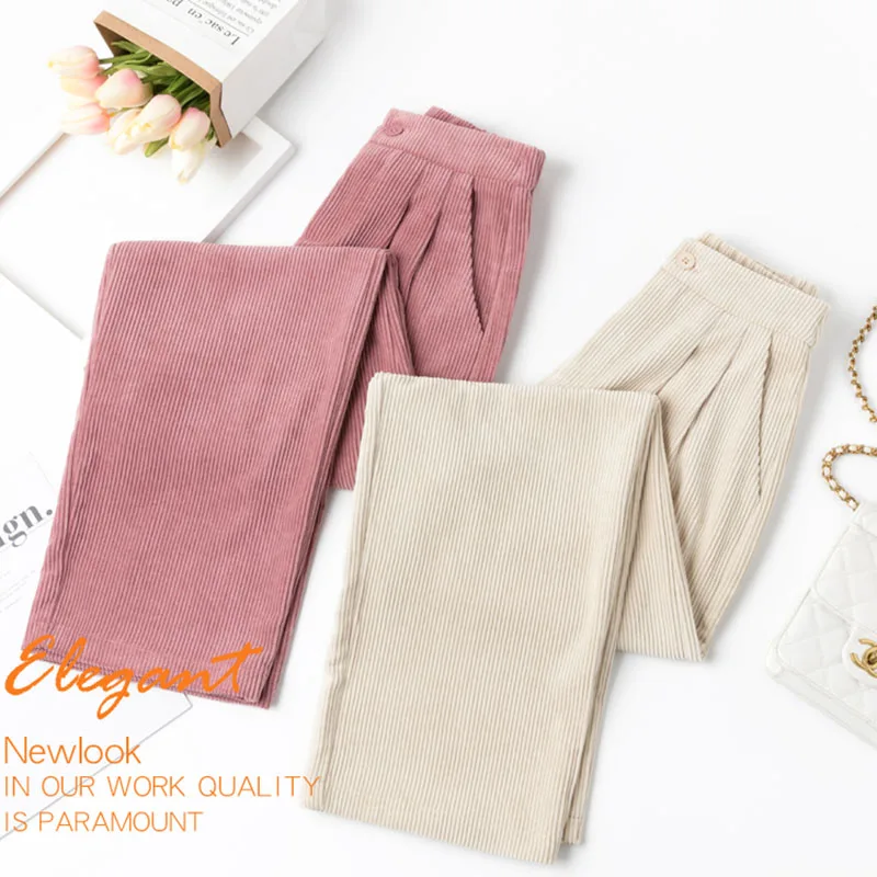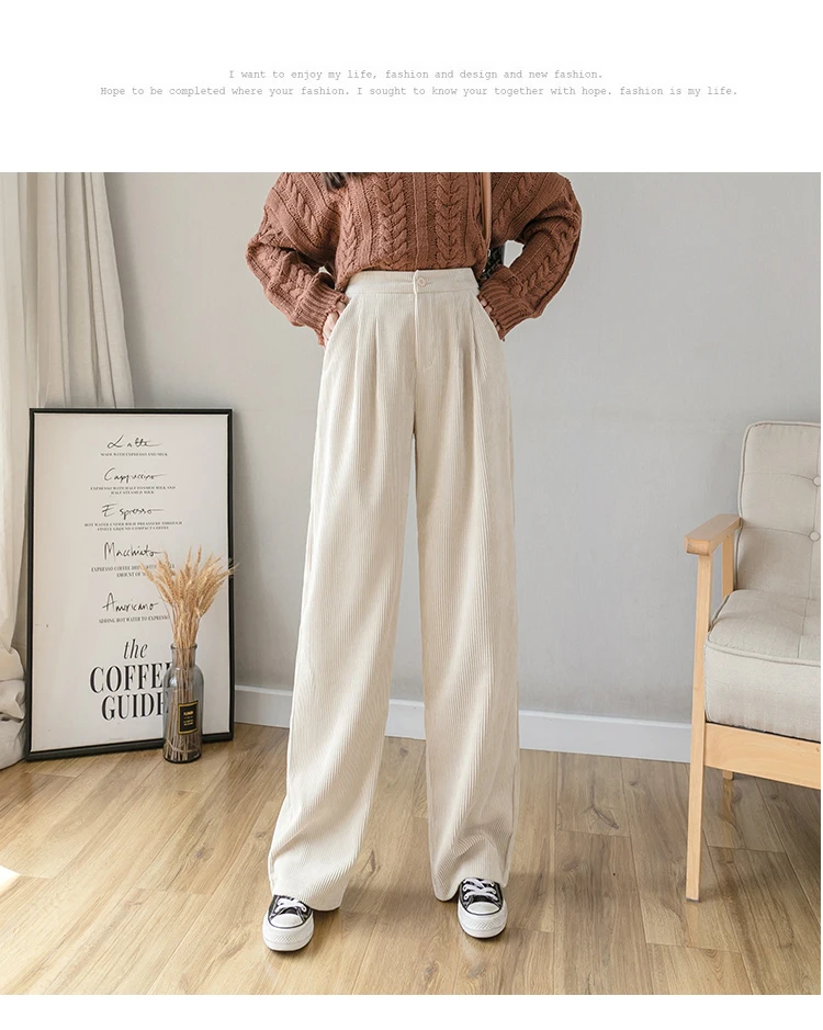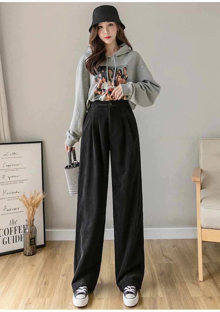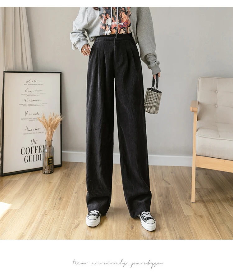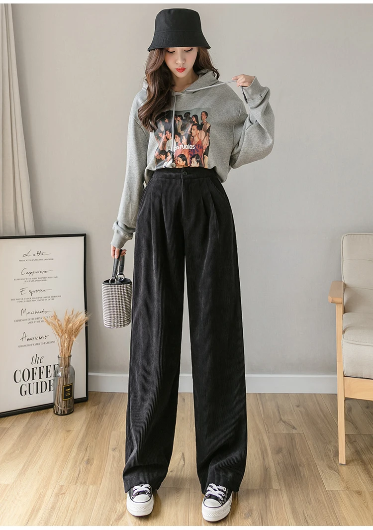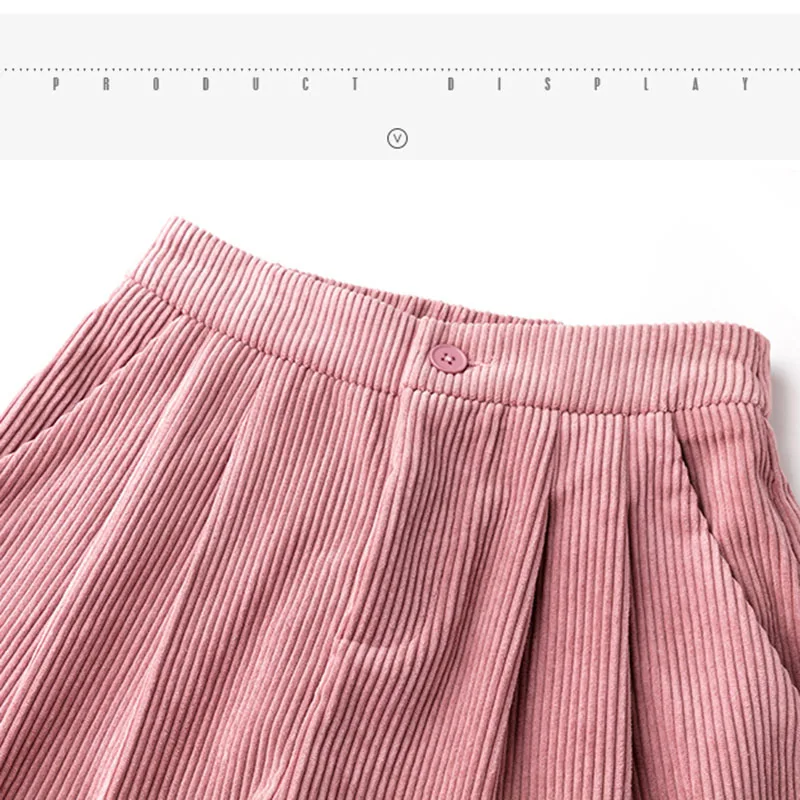 Женские вельветовые брюки с карманами, серые, бежевые, черные, розовые свободные брюки с высокой талией и широкими штанинами, новинка зимы 2020