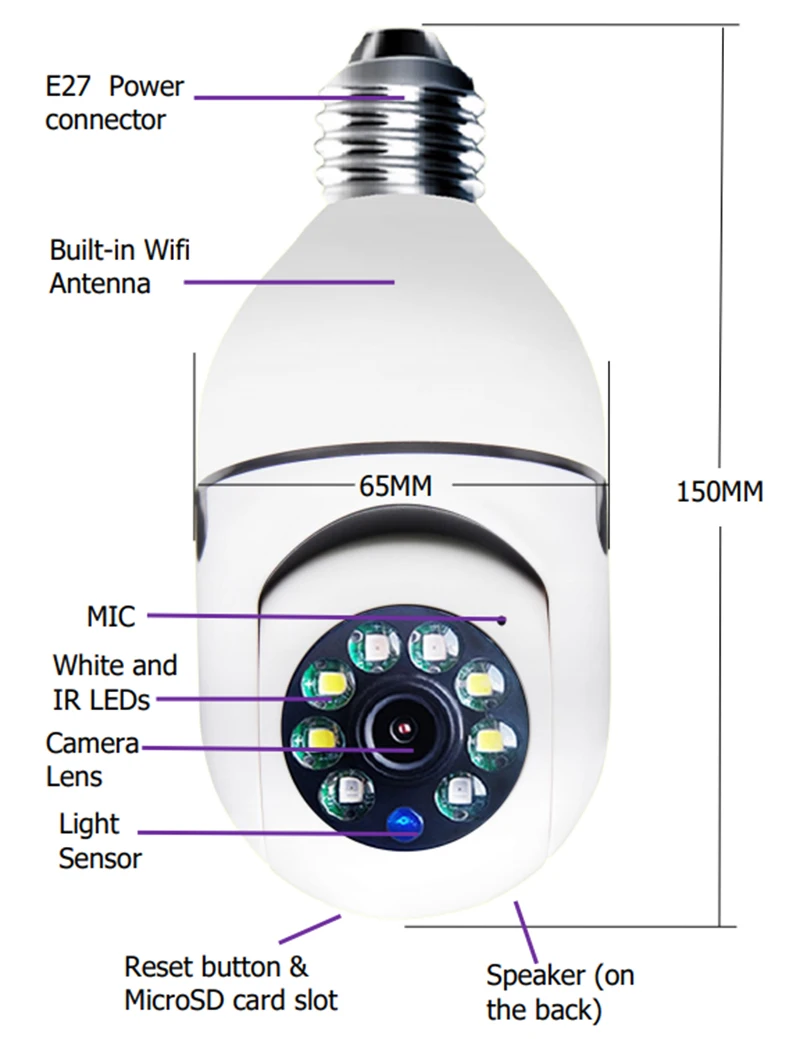 Можно прикрепить к любой лампе E27. Это не только камера, но и искусство в вашем доме.
