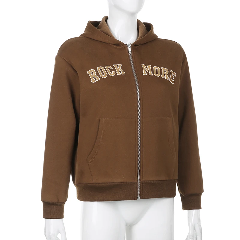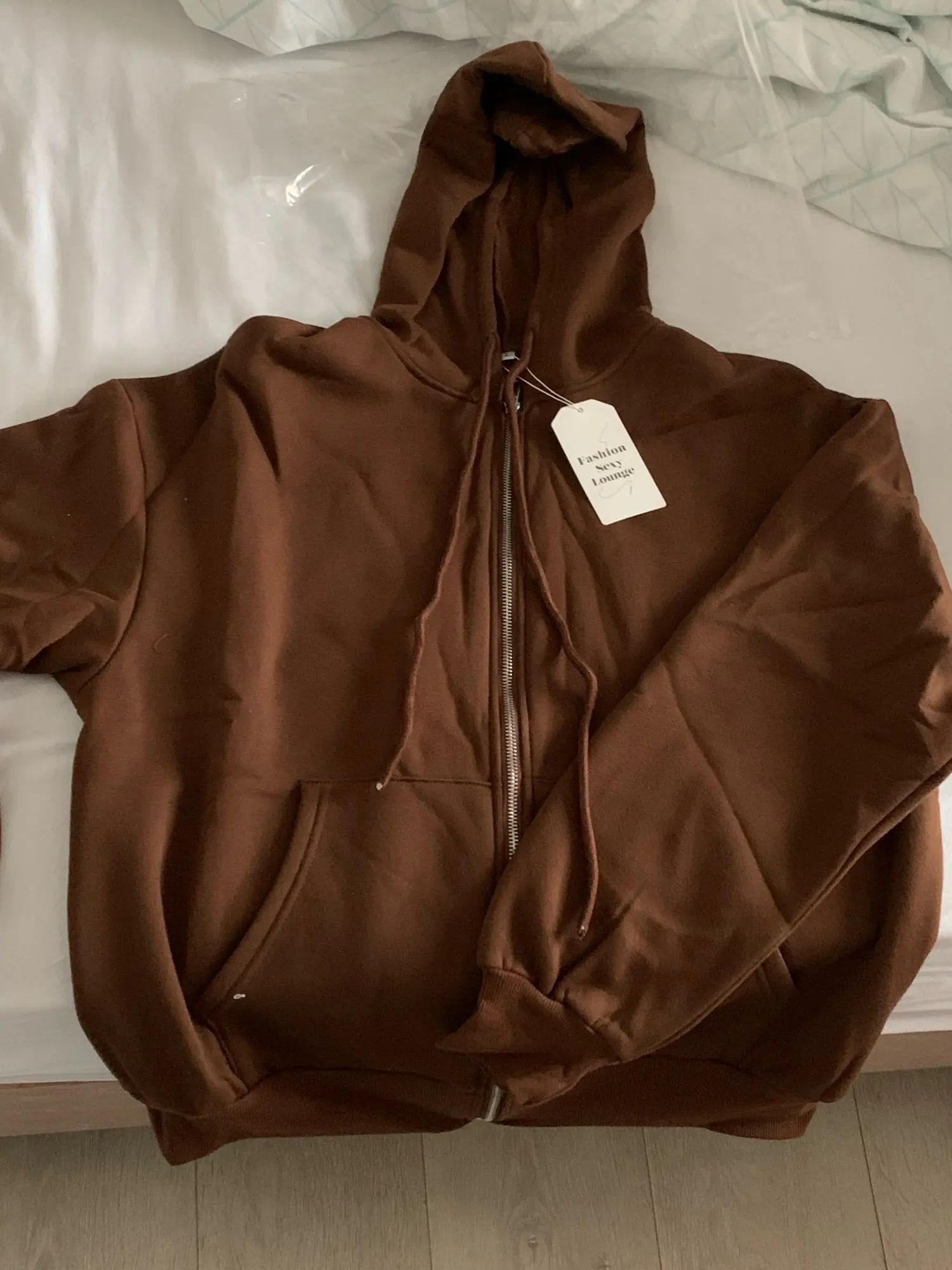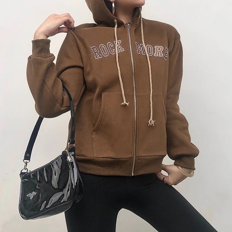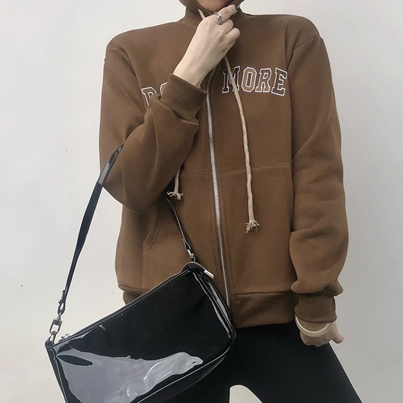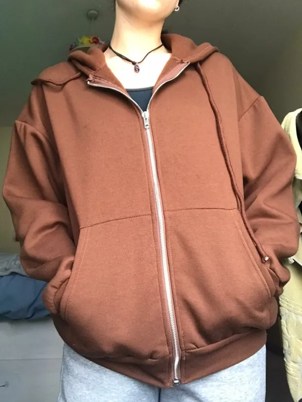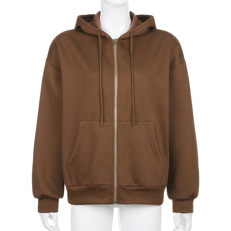 Коричневая Женская толстовка на молнии, с капюшоном, с длинным рукавом