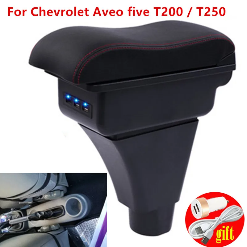 Кожаный подлокотник для Chevrolet Aveo five T200T250, центральная консоль, подлокотник с интерфейсом usb