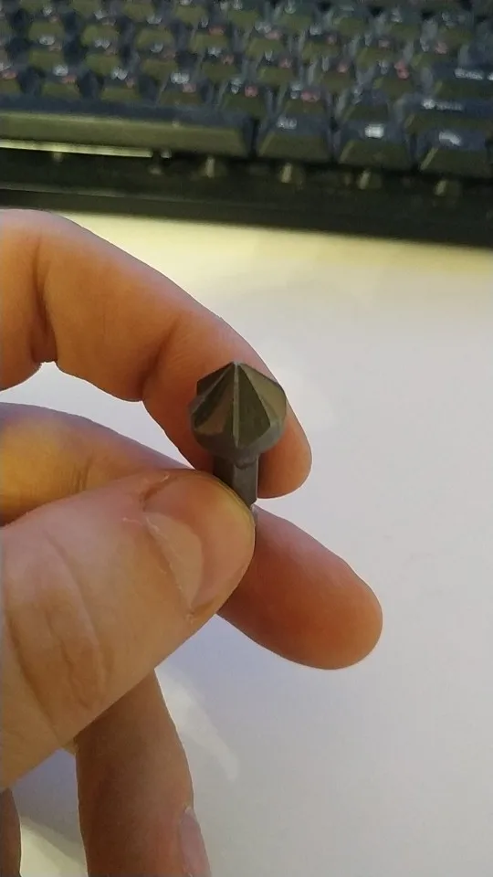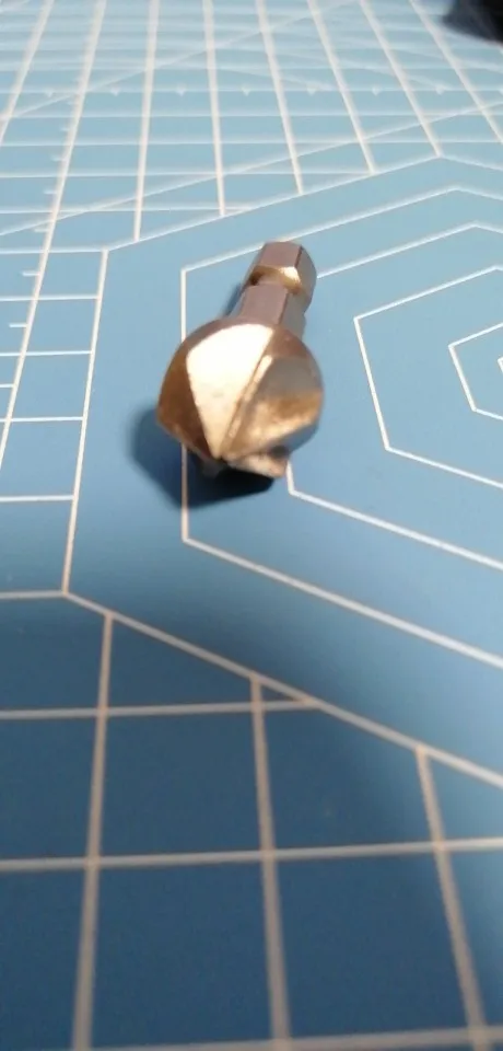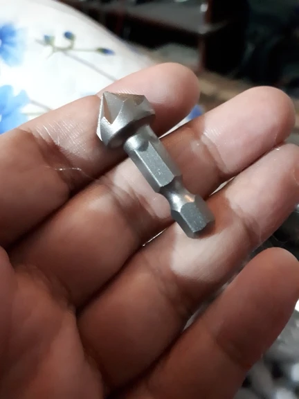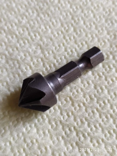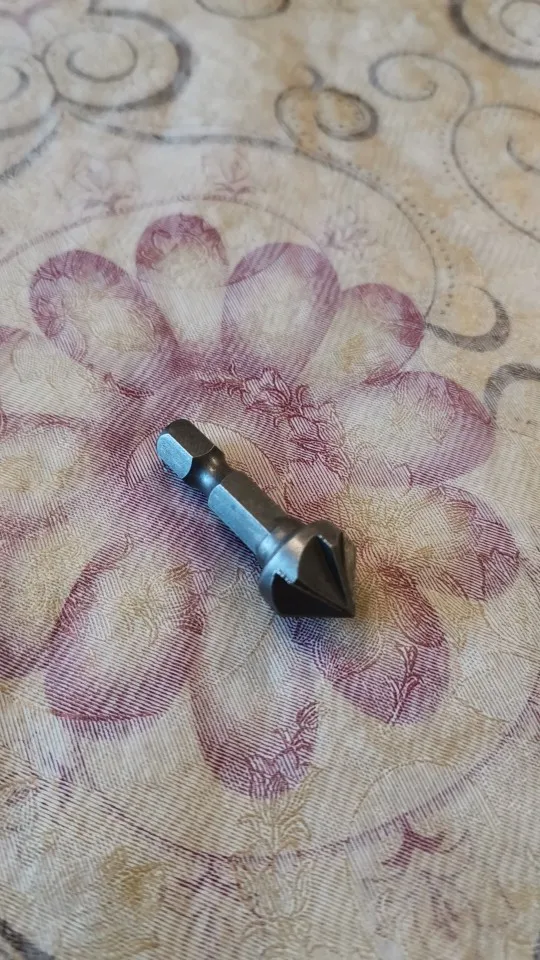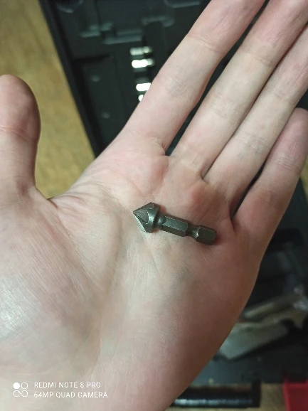Выглядит очень грубо, по сути заточки нет, а только формообразующая фрезеровка граней после отливки, но в то же самое время со своими задачами справляется, чисто зенкует сухую березу под потай самореза