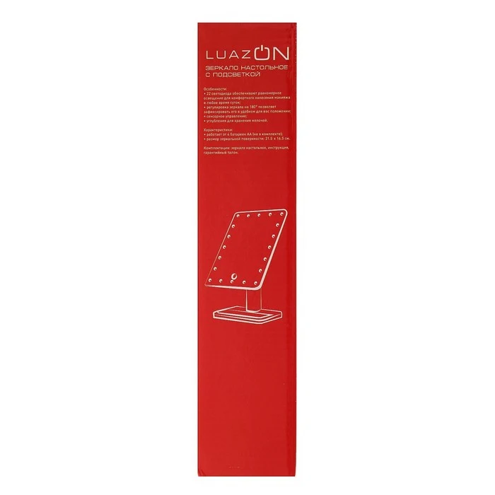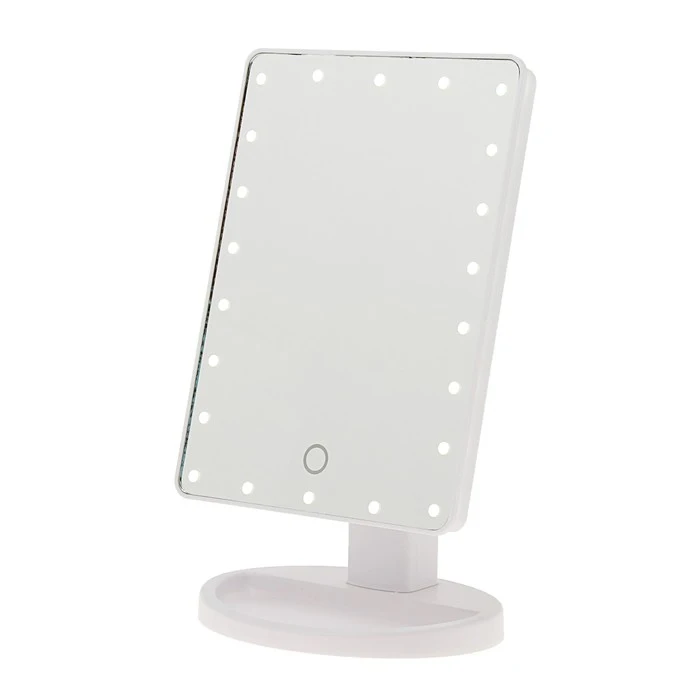 Зеркало с подсветкой LuazON KZ-06, настольное, одностороннее, 22 LED, сенсорная кнопка, белое