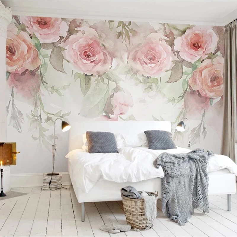 Пользовательская фотография настенная бумага розы цветы ручная роспись акварель 3D фрески настенная бумага для гостиной спальни настенная живопись современный 3D