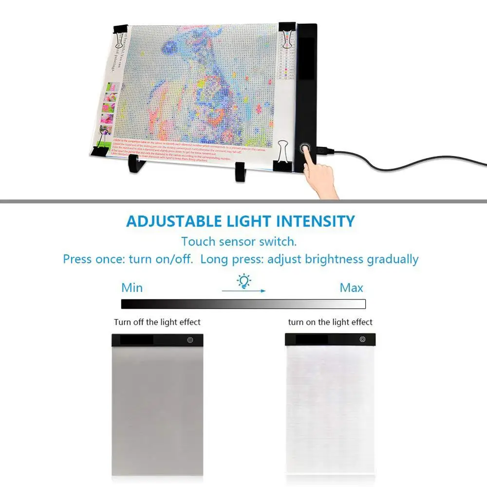 Светодиодный светильник A4 для алмазной живописи, светильник с питанием от USB, набор для доски, регулируемая яркость со съемной подставкой и зажимами