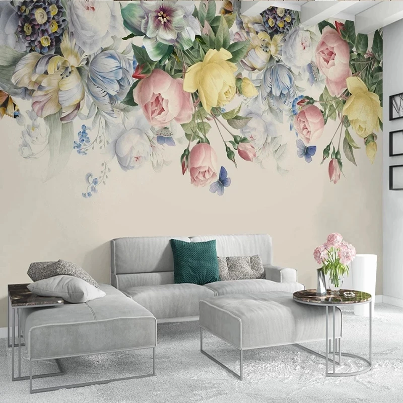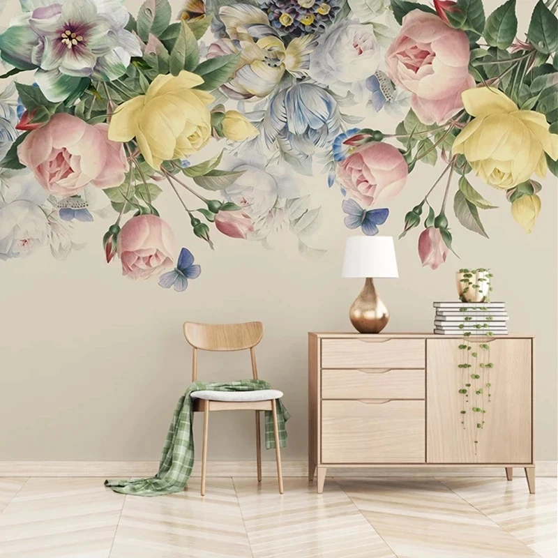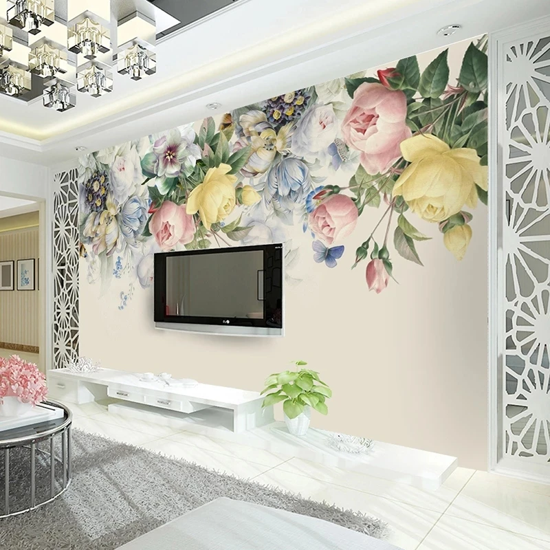 Настенная 3D Бумага по индивидуальному размеру в Европейском стиле, цветочный фон для гостиной, фона для телевизора, фотобумага, ручная роспись, роза, цветок, художественная роспись