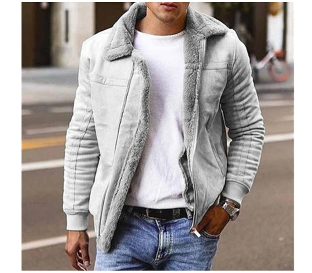 Куртка мужская замшевая с меховым воротником, мотоциклетная теплая ...