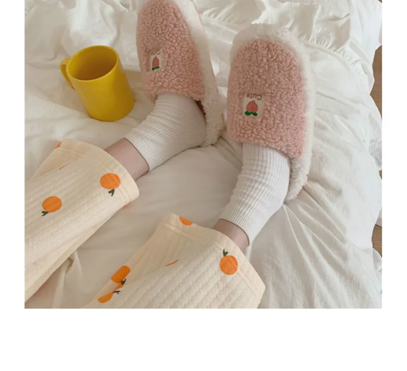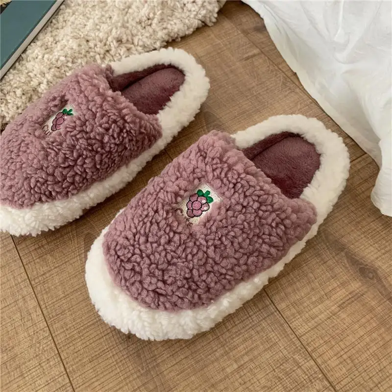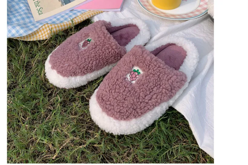 Женские зимние теплые плюшевые тапочки с фруктами, ананасом, Персиком, виноградом, милые Мультяшные парные мягкие тапочки, меховые Нескользящие сланцы для дома и спальни