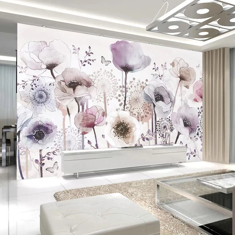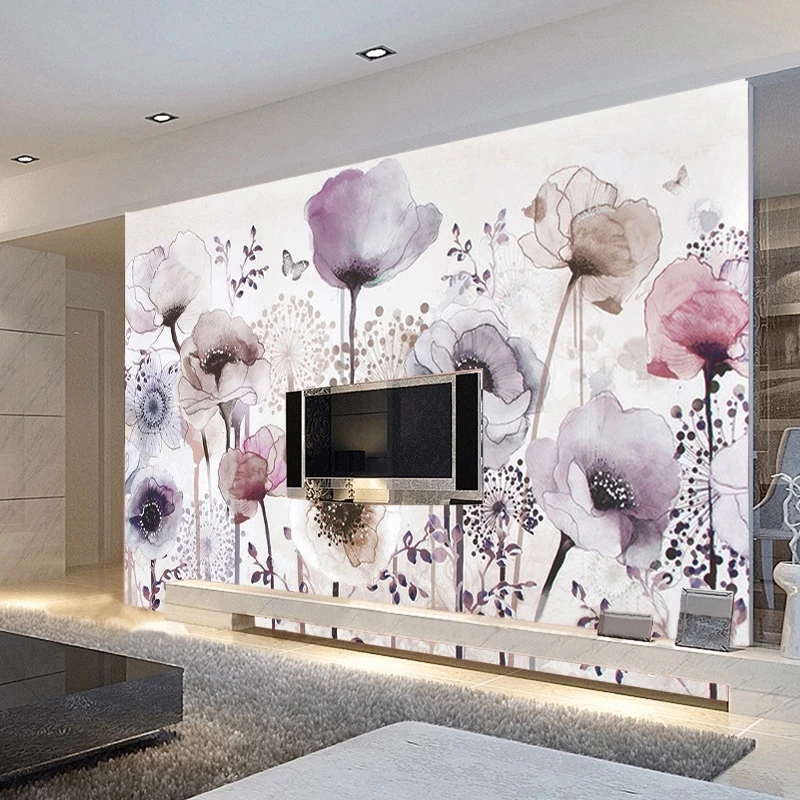 Пользовательские Настенные обои 3D модная Акварель Ручная роспись цветок Цветочная Гостиная ТВ фон домашний декор обои живопись