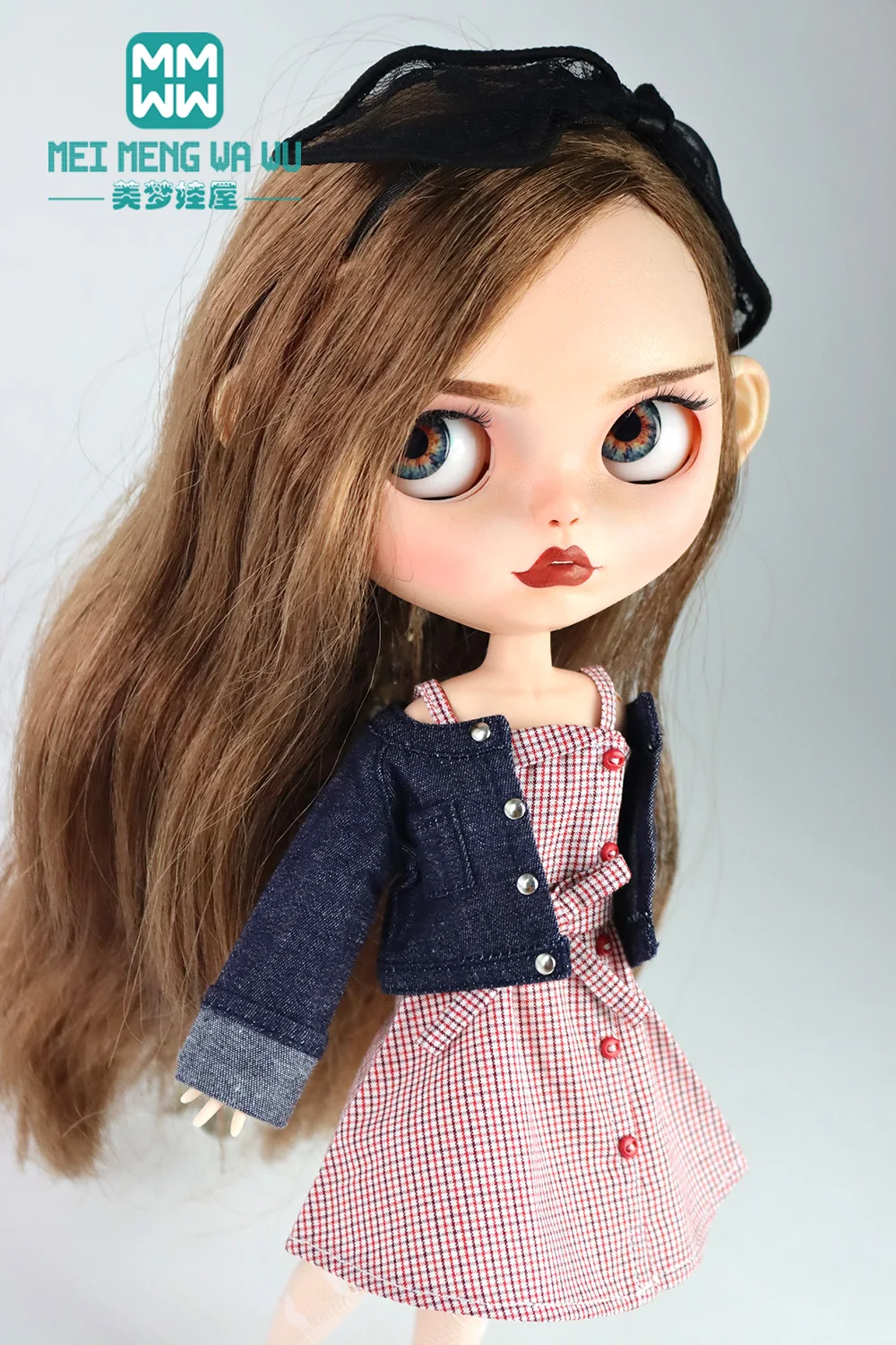 Аксессуары для кукол блайз азон 16, подходит для одежды 28-30 см, модная юбка сарафан в клетку, джинсовая куртка