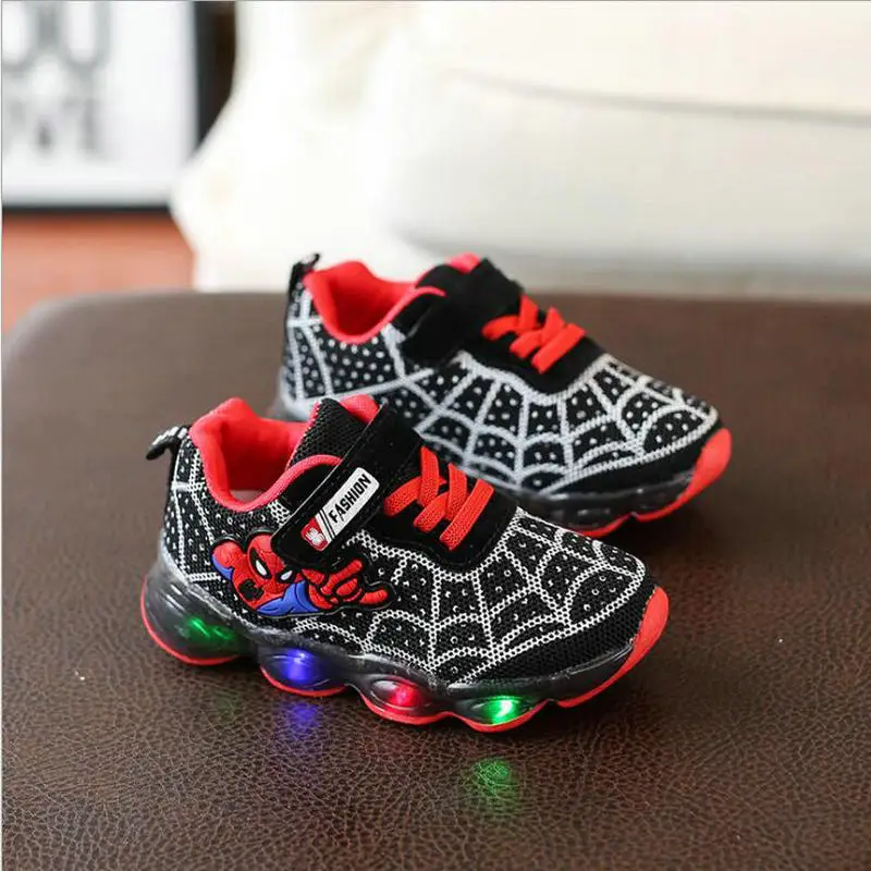 Детские светящиеся туфли Человек-паук, мягкие кроссовки для мальчиков и девочек, дышащие, со светодиодной подсветкой, для младенцев, тенниса, весна-осень