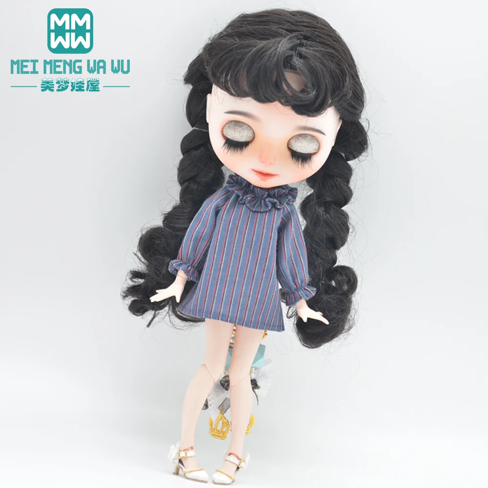 Аксессуары для кукол блайз азон 16, подходит для кукол 28-30 см, модное платье в полоску, подарок для девочки на высоком каблуке