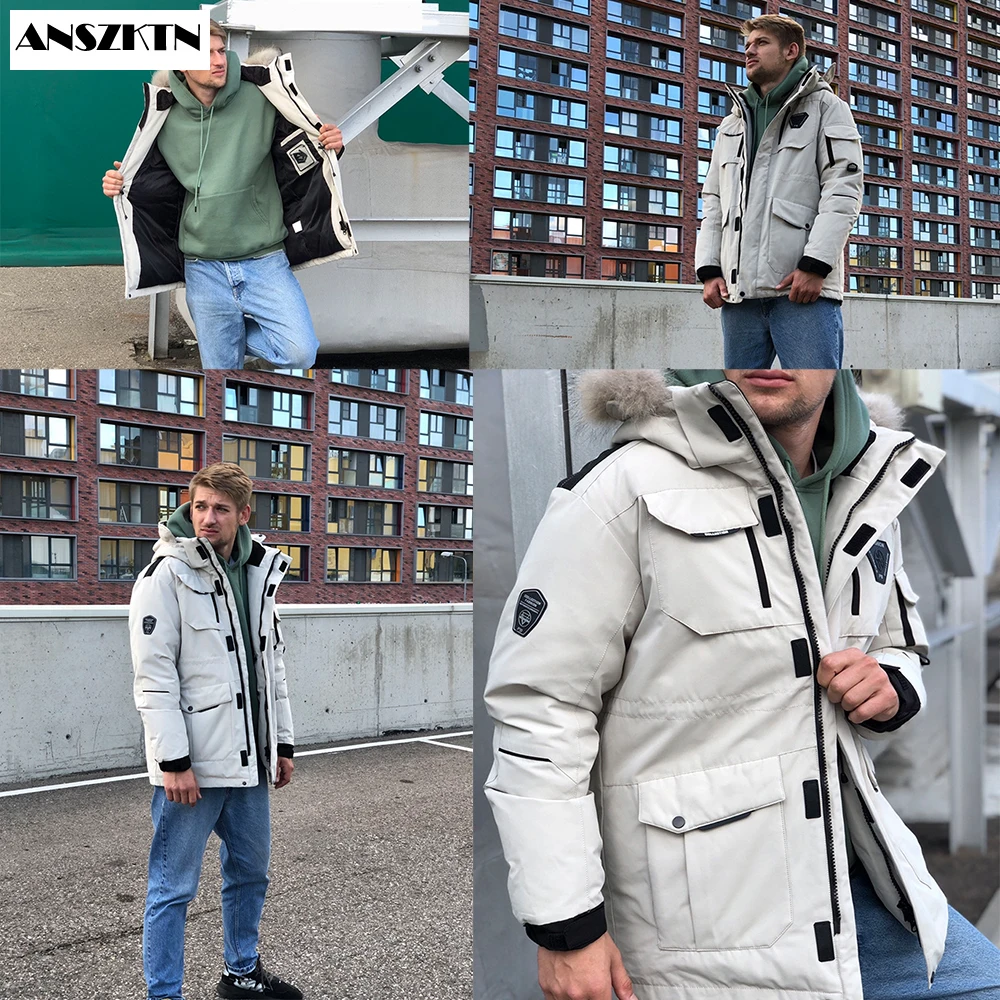 Мужской пуховик с большим воротником из натурального меха, теплая парка, для морозов до 30 градусов, повседневный водонепроницаемый пуховик, зимнее пальто, размеры 3XL