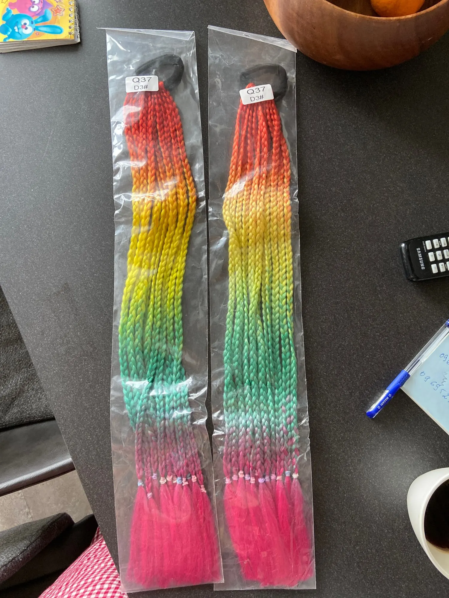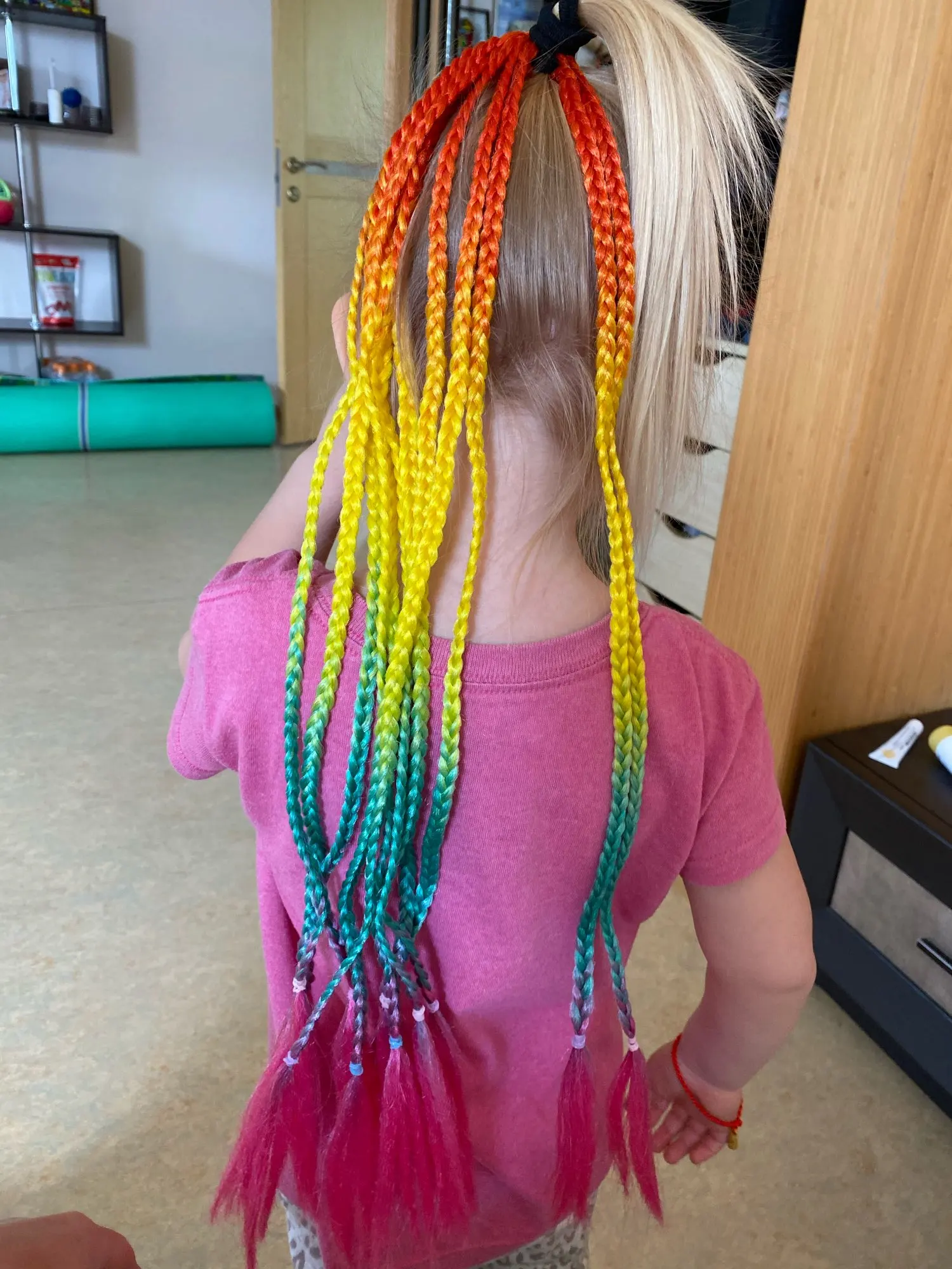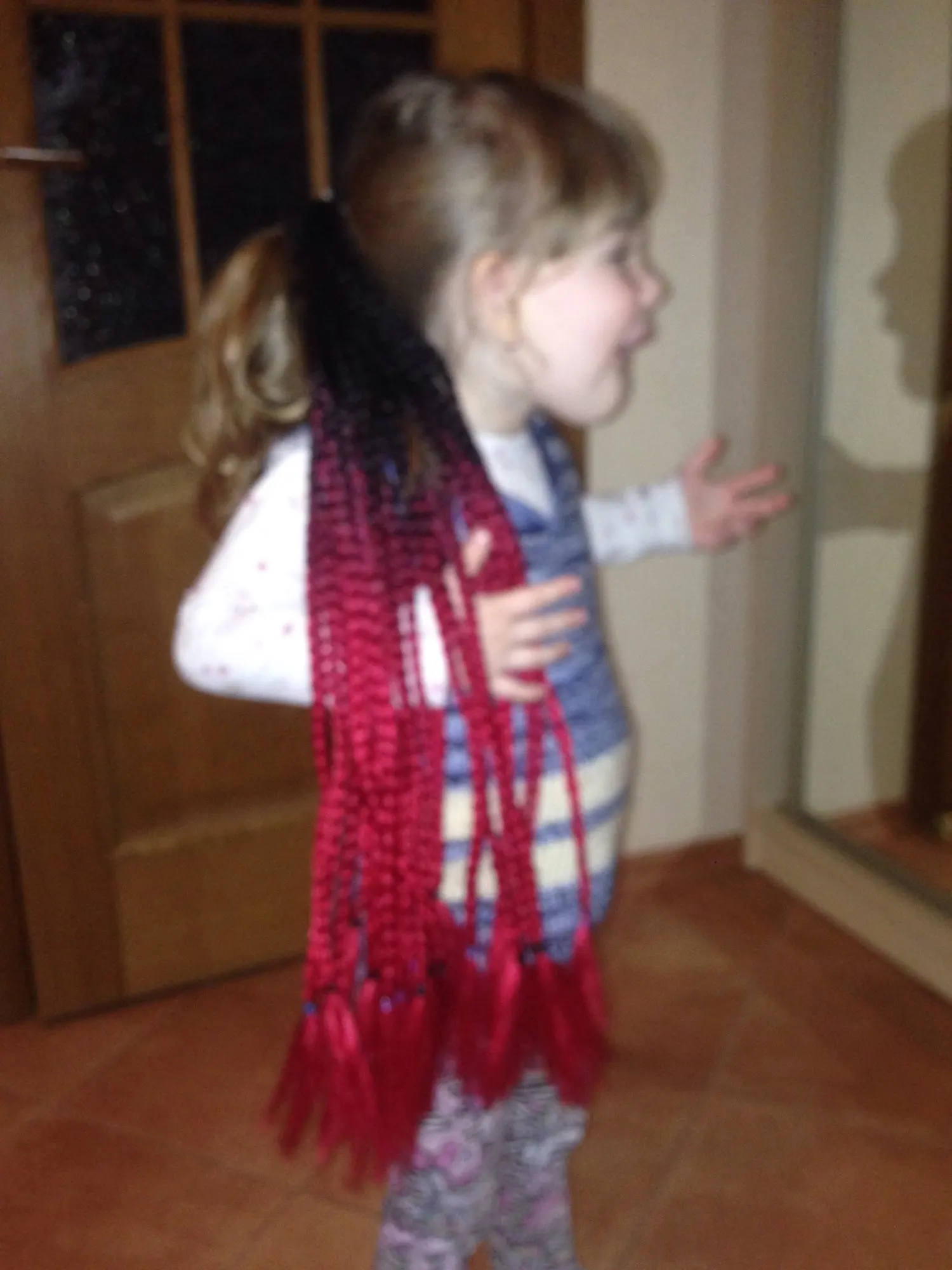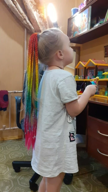 Получила свои косички, качество клас, выглядит очень стильно, цвет яркий.Спасибо продавцу, я думаю она будет очень рада.