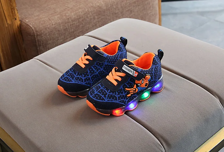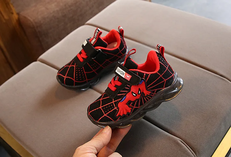 Детские светящиеся кроссовки, мультяшный Человек-паук, сетчатая обувь со светодиодной подсветкой, для мальчиков и девочек, на осень