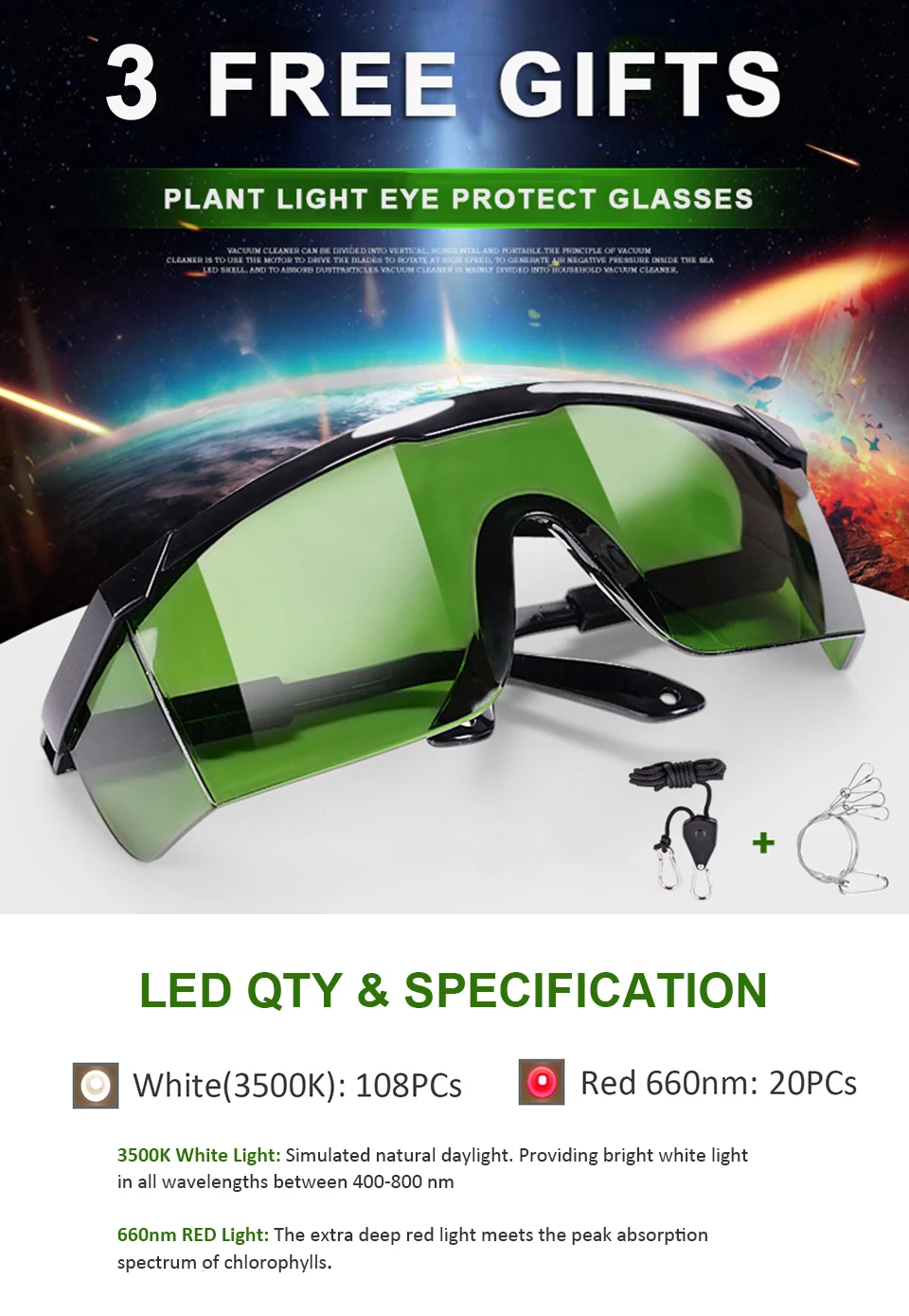 Emitting color108pcs 3500K White Led+ 20pcs 660nm Red Led