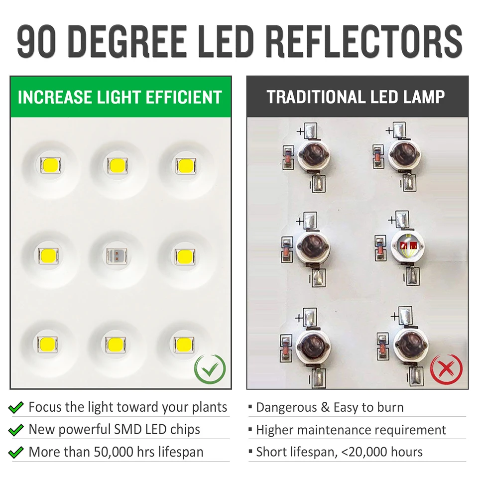 Использование супер яркий светодиодный чипы, которые с высоким Выход НПС, разработаны, чтобы держать баланс PAR/люмен Выход.
