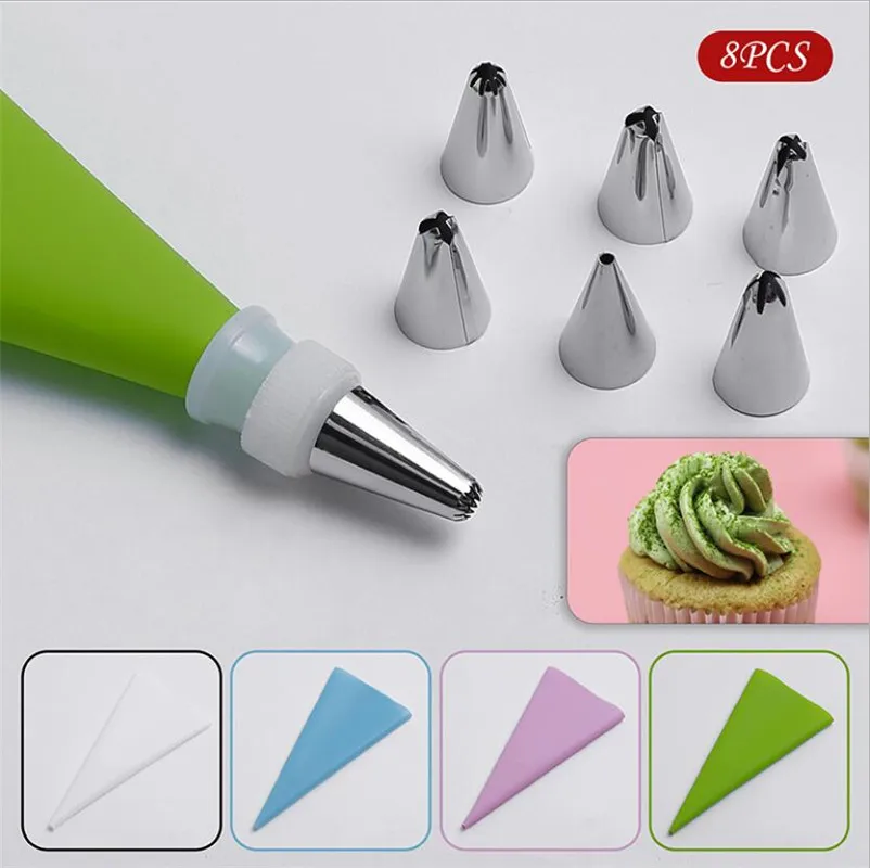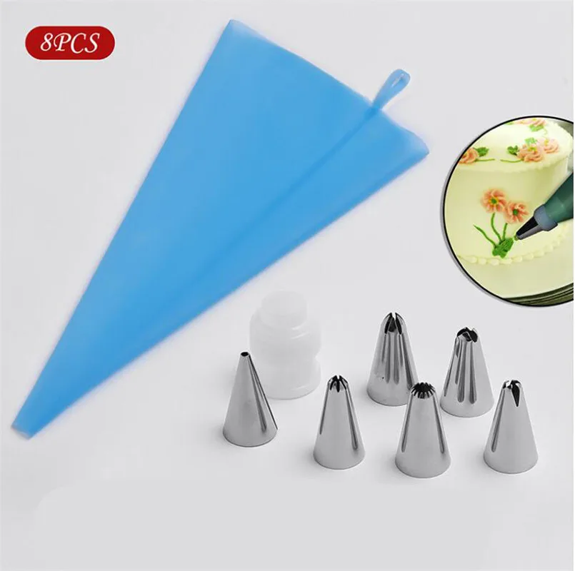 8 шт.компл. силиконовые наконечники для кондитерских мешков, насадка для обледенения кондитерских изделий, многоразовый кондитерский мешков + 6 насадок, инструменты для украшения тортов