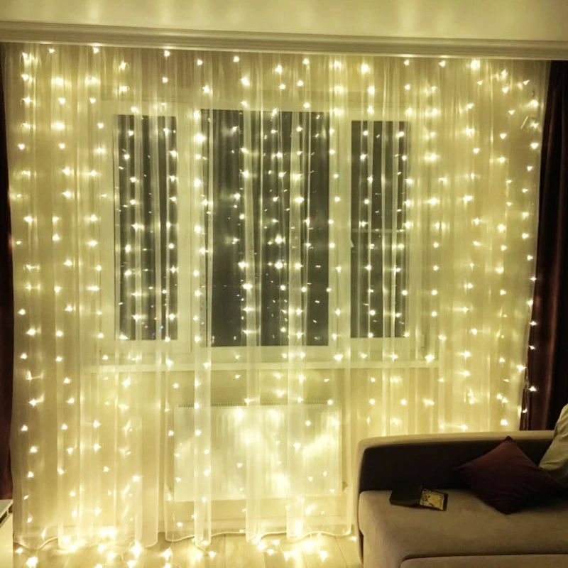 6 м x 3 м гирлянда сосульки СВЕТОДИОДНЫЙ занавес струнные огни Рождественские украшения праздничный вечерние домашние патио Свадебные сказочные огни для комнаты