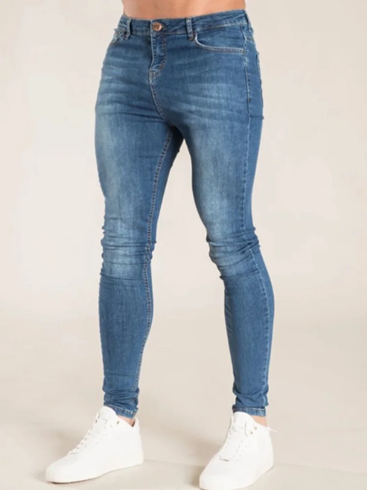 Для мужчин Эластичные Обтягивающие джинсы Для мужчин 2020 стрейч узкие брюки уличная Для мужчин s синие джинсы для бега ковбойские штаны