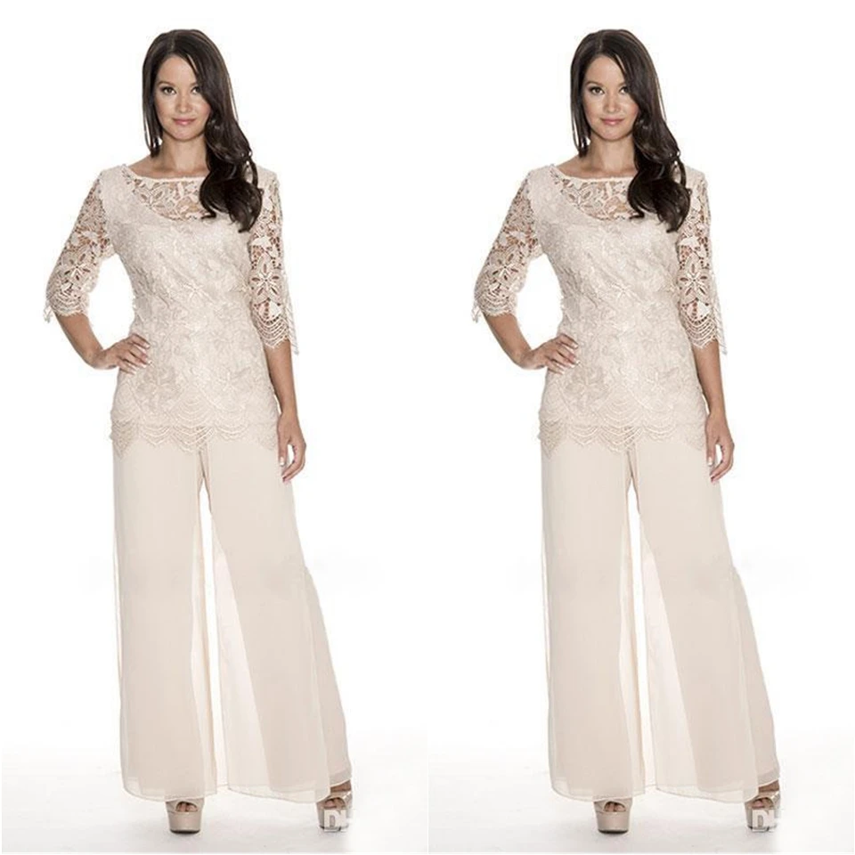 Индивидуальное деловое женское платье с круглым вырезом, платье для матери невесты, брюки, брюки, костюмы из двух частей с шифоновым кружевом и рукавом до локтя