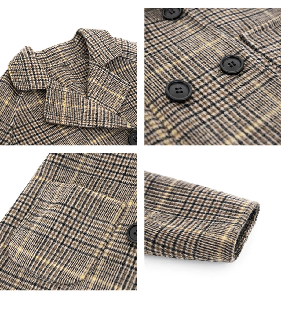 Куртка для мальчиков и девочек, шерстяная двубортная куртка в клетк...