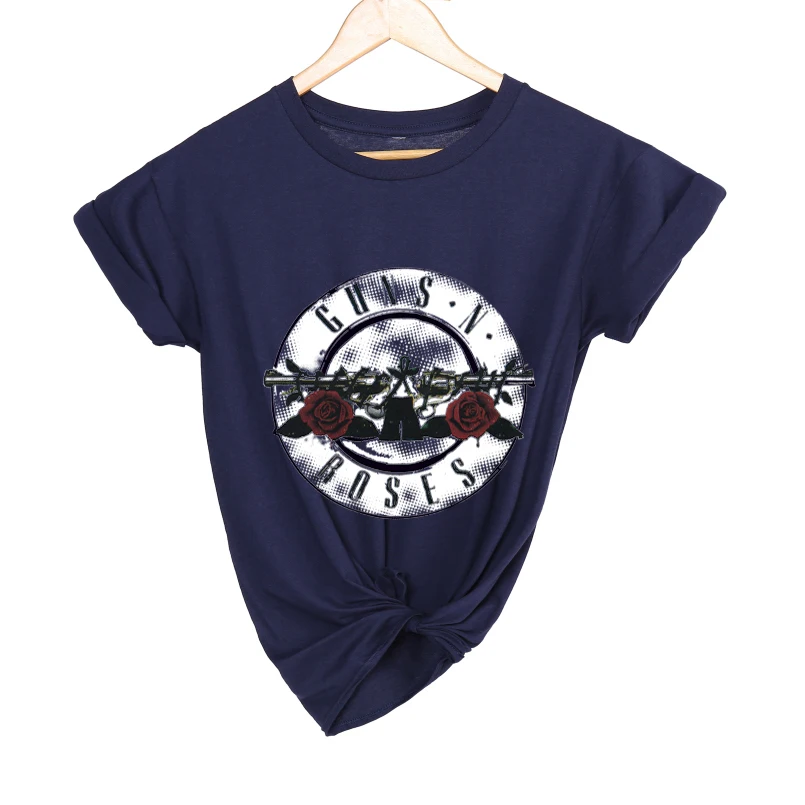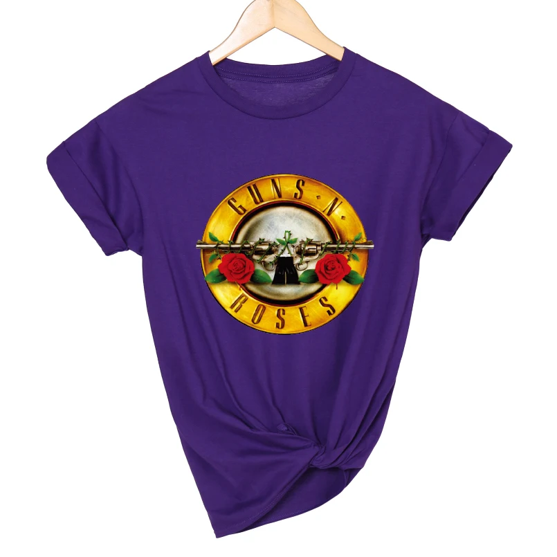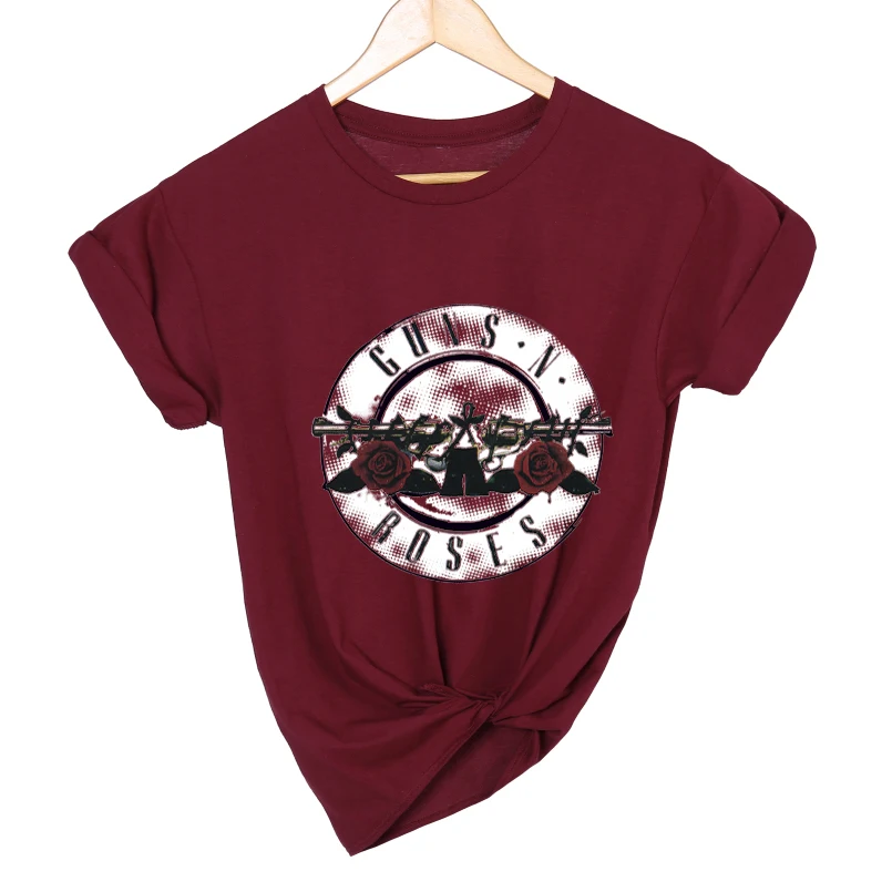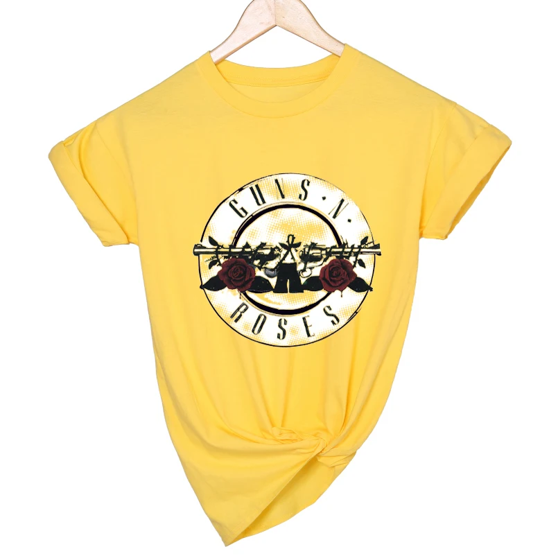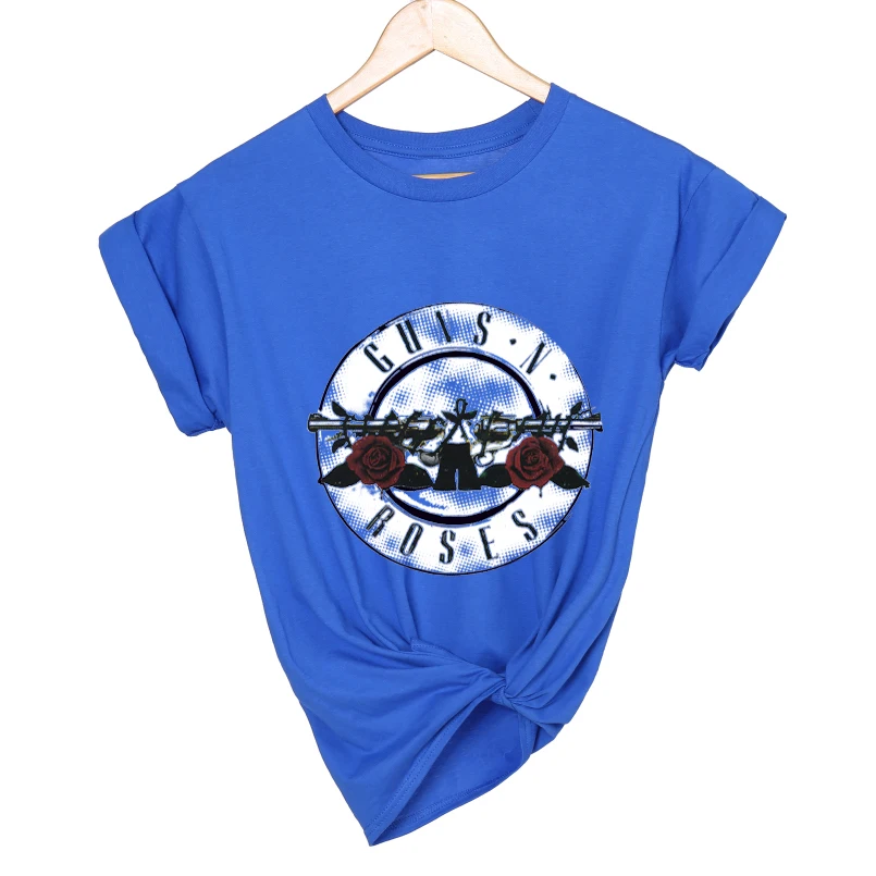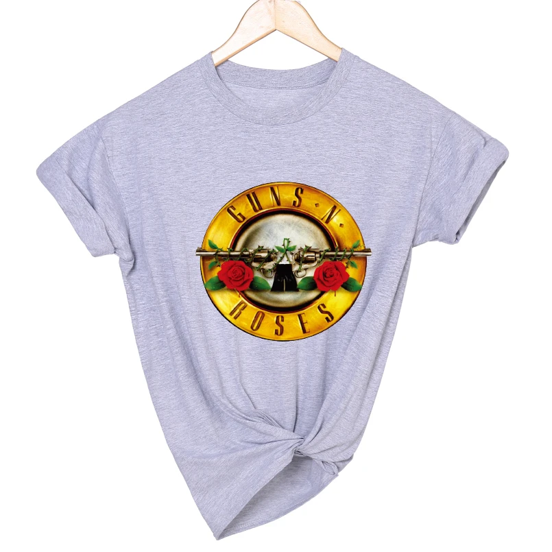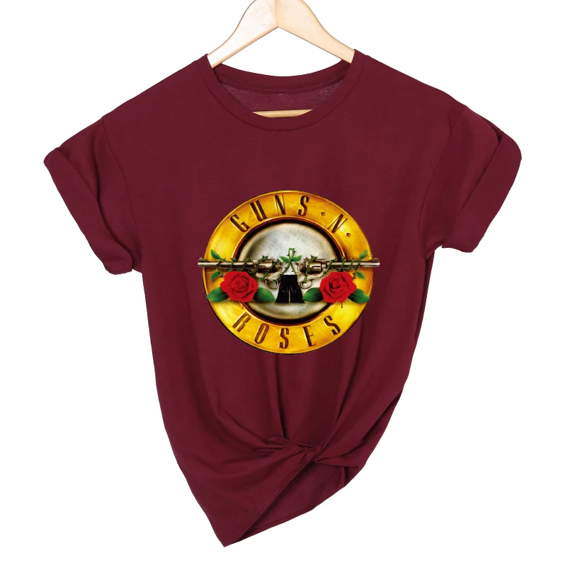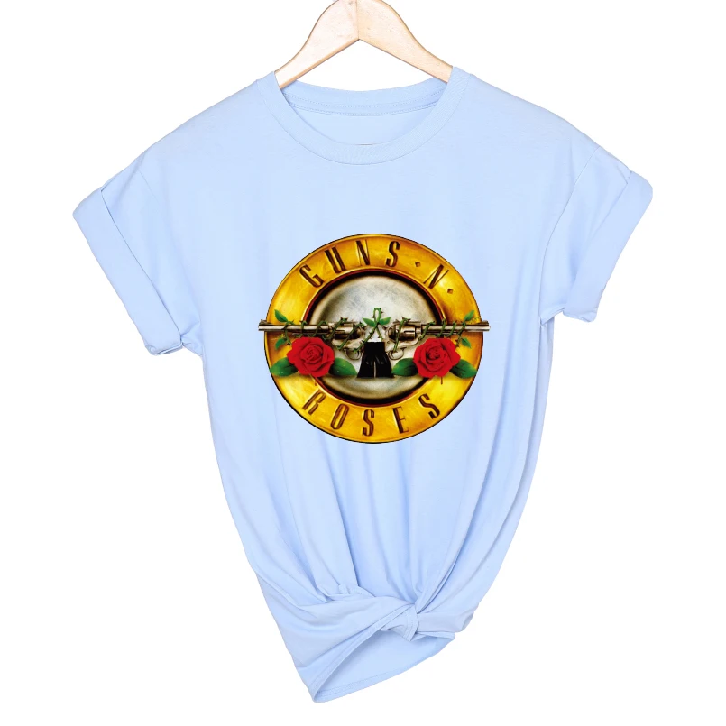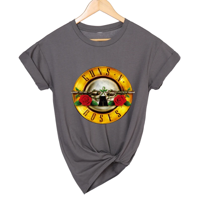 Футболка женская хлопковая в стиле оверсайз с принтом GUNS and рок-группа, розы, уличная одежда в стиле панк, летний топ, Прямая поставка