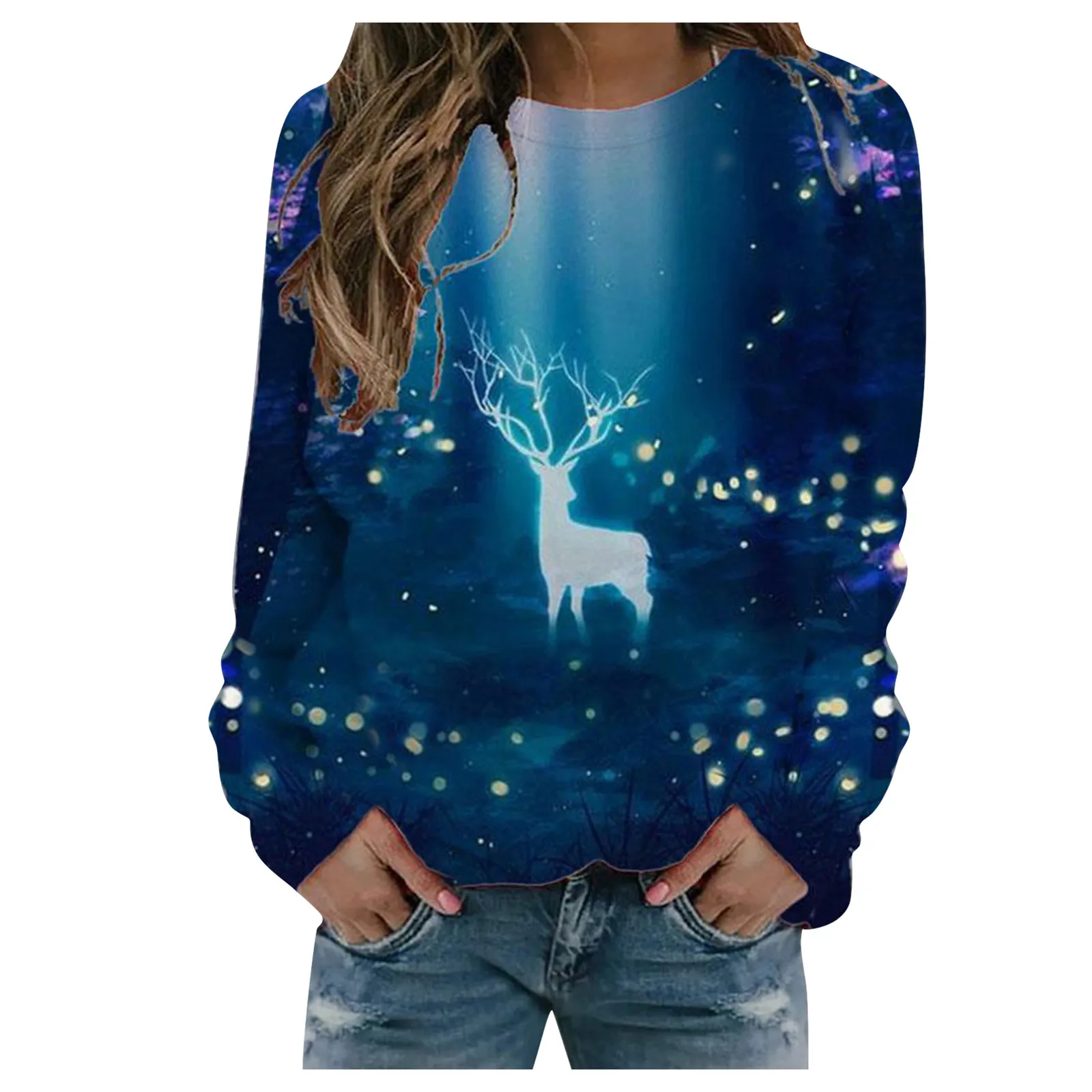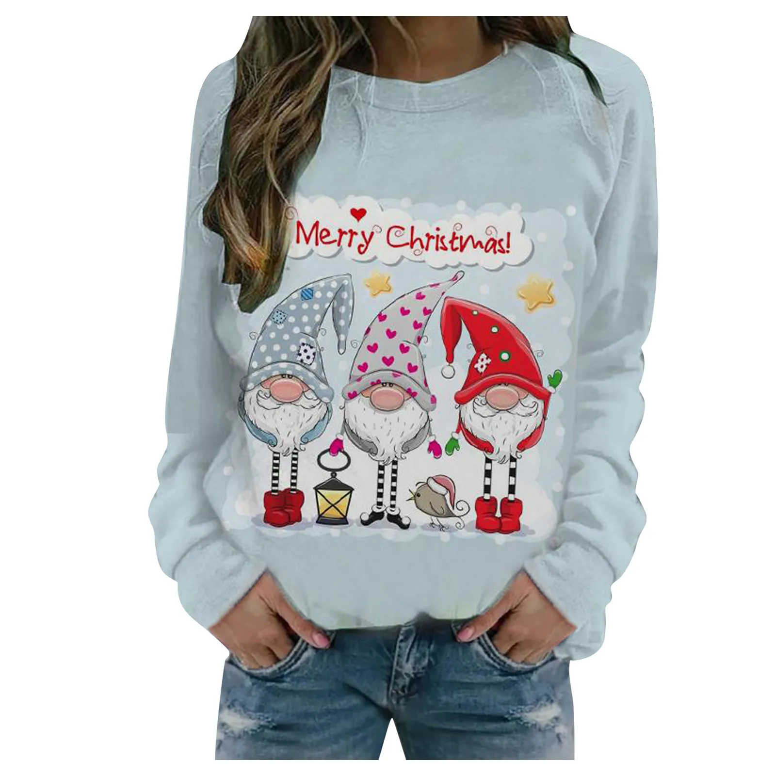 Женская Рождественская Толстовка, повседневный Свободный пуловер, Топ