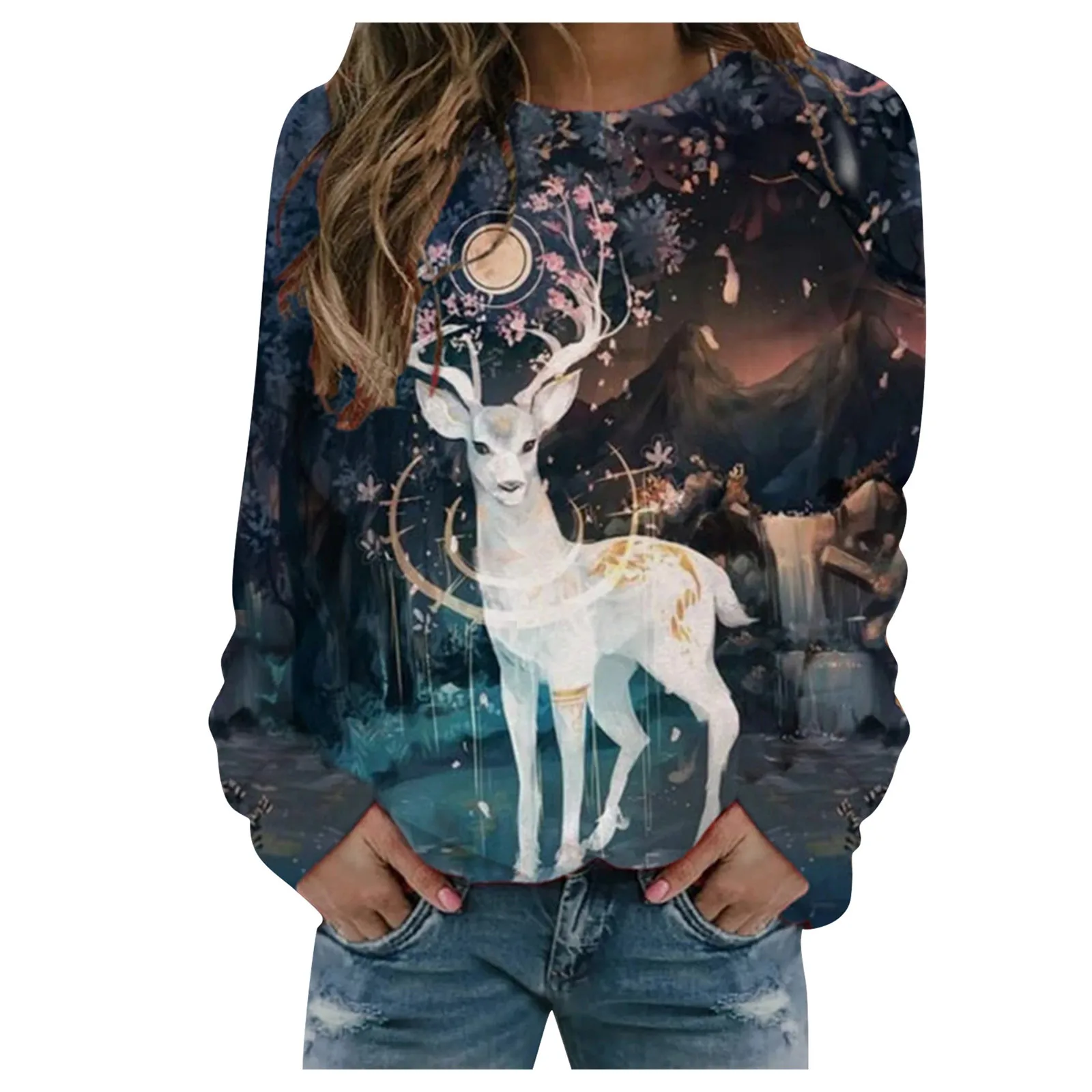Женская футболка с длинным рукавом, с принтом в виде оленя, кота