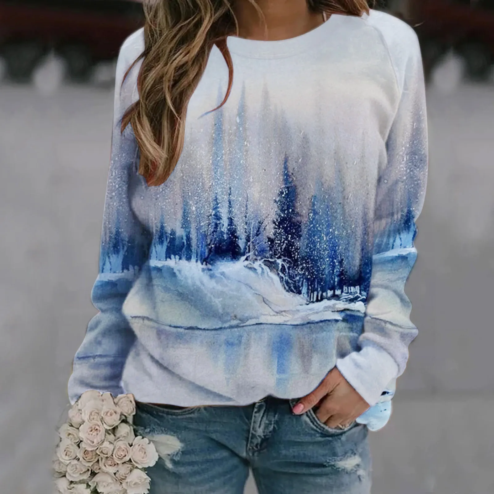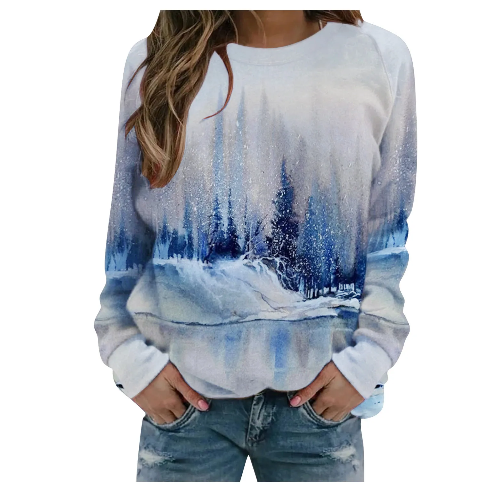 Женский свитшот с рисунком гор, с длинным рукавом, о-образным вырез...