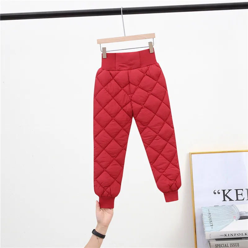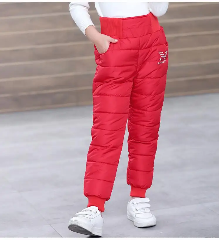 Теплые утепленные пуховые брюки для мальчиков и девочек, зимние детские брюки высокого качества, подростковые пуховые брюки для мальчиков и девочек, детские лыжные пуховые брюки с подкладкой
