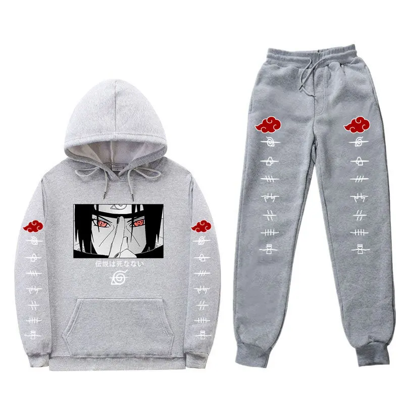 Спортивный костюм мужской повседневный из 2 предметов, теплый свитшот с японским мультяшным графическим принтом, пуловер, спортивные штаны, Осень-зима