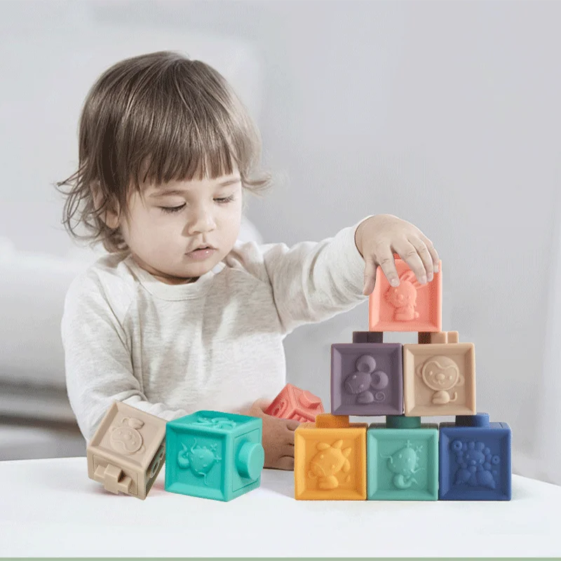 12 шт. в упаковке, 3D сенсорный силиконовые гнущиеся строительные блоки BPA бесплатно мультфильм животных Souptoys руки захватывают игрушка мягкие резиновые детские массаж Squeeze BathToy