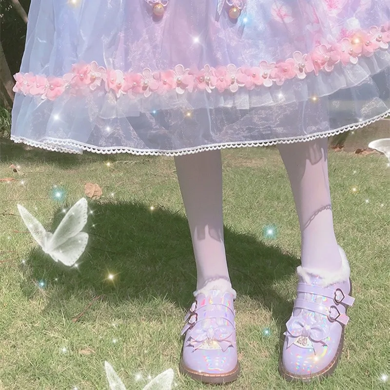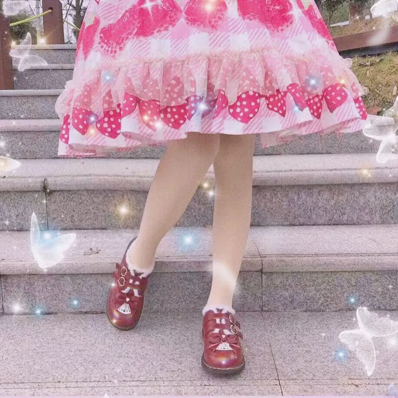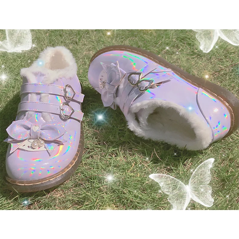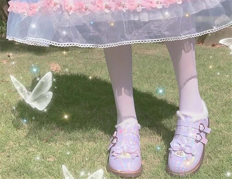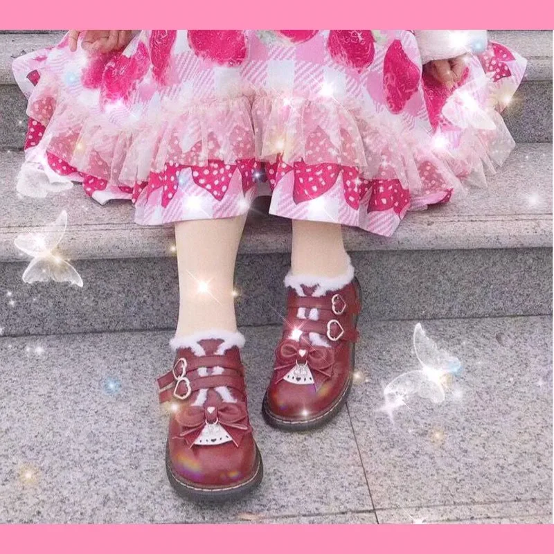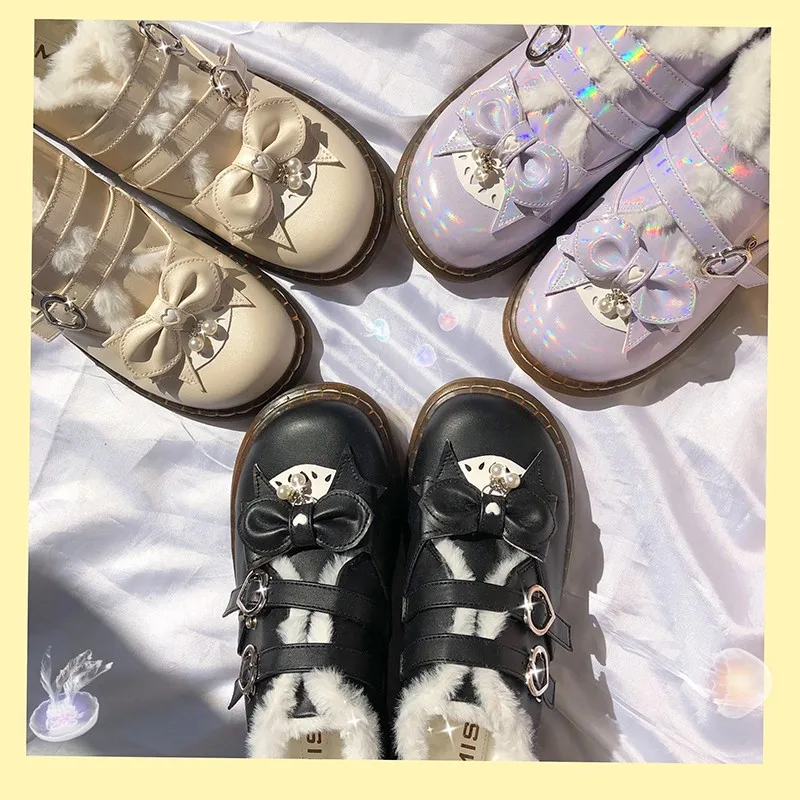 Женские бархатные ботинки Лолита, сапоги из искусственной кожи на низком каблуке, с бантом и двумя пряжками, аниме, для косплея, японская Лолита, большой размер 40, 41, для зимы