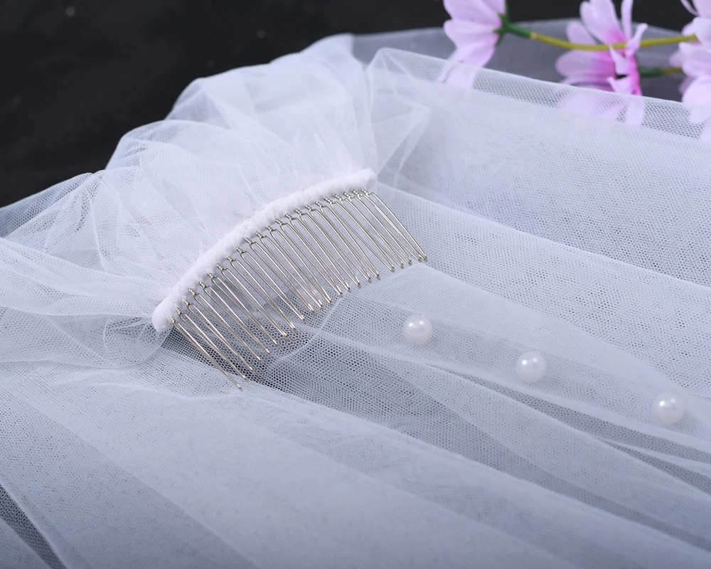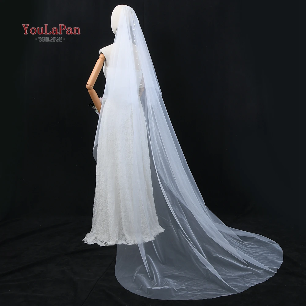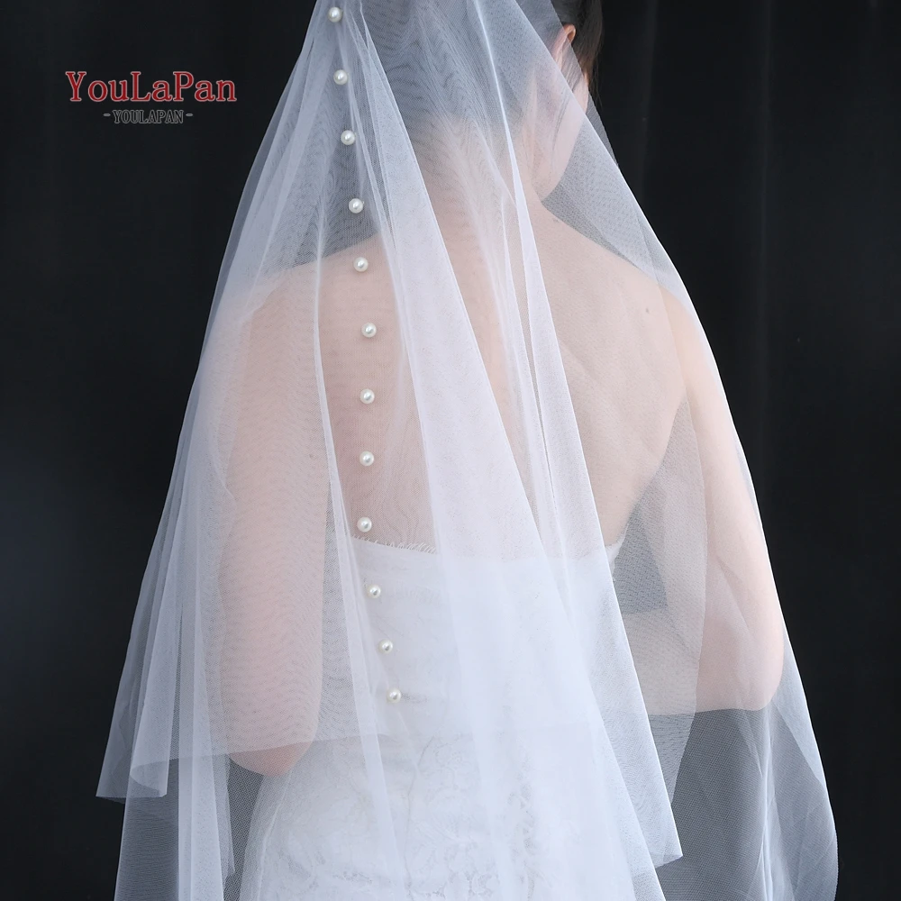 YouLaPan V64 элегантная свадебная фата с рубашкой 2 слоя жемчуга свадебная фата мягкий тюль аксессуары для невесты в стиле бохо Свадебный Veu