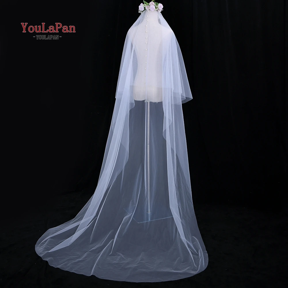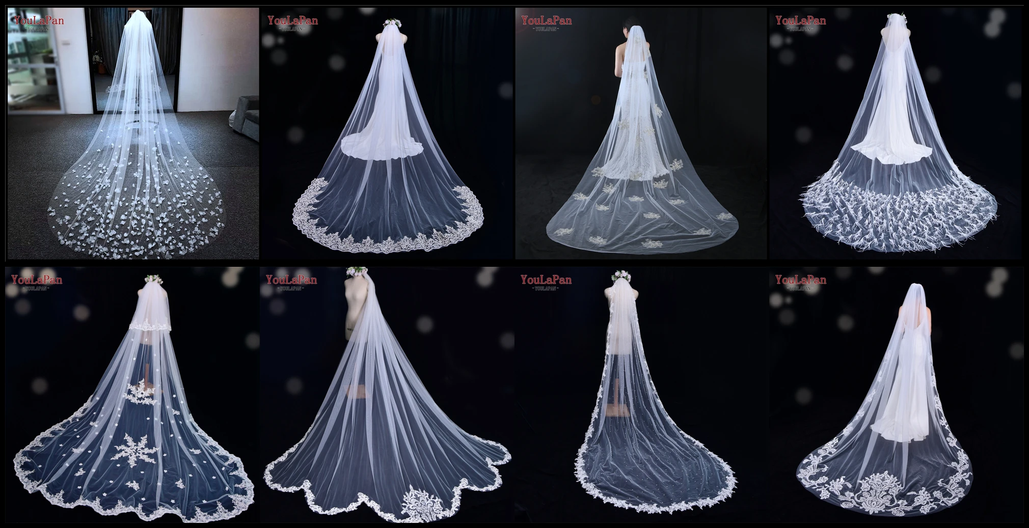 Фата YouLaPan V47, Длинная свадебная фата с кружевной аппликацией, ...