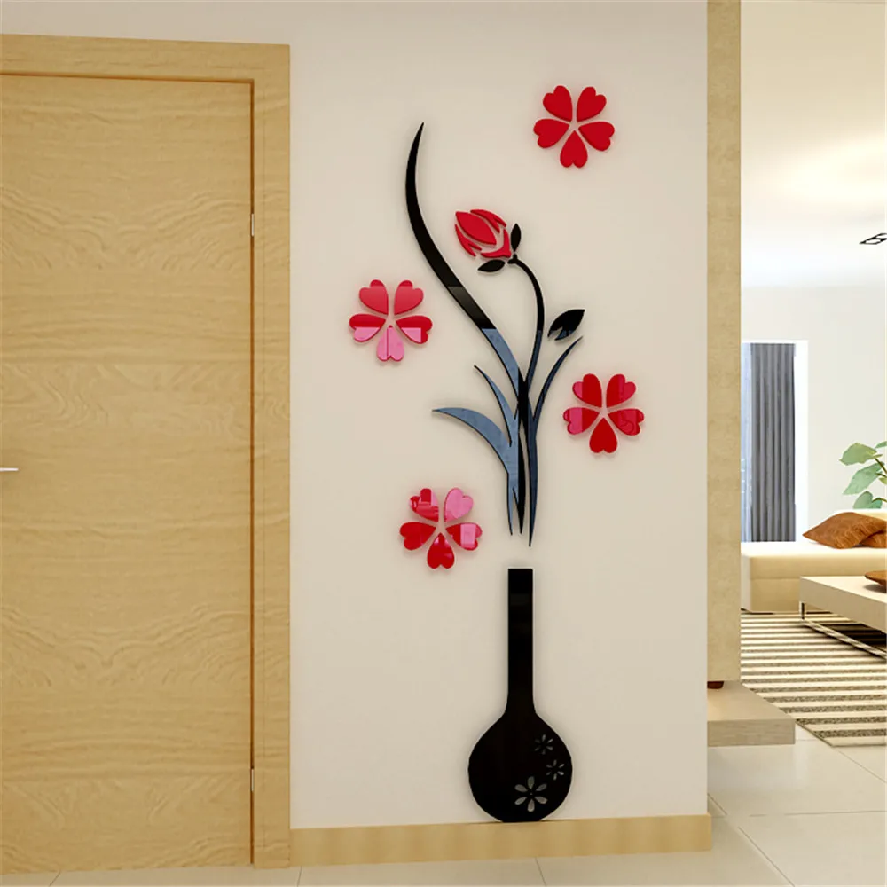 Новая модная винтажная 3D ваза, Цветочное дерево, Хрустальная акриловая Наклейка на стену, домашний декор для ТВ сделай сам
