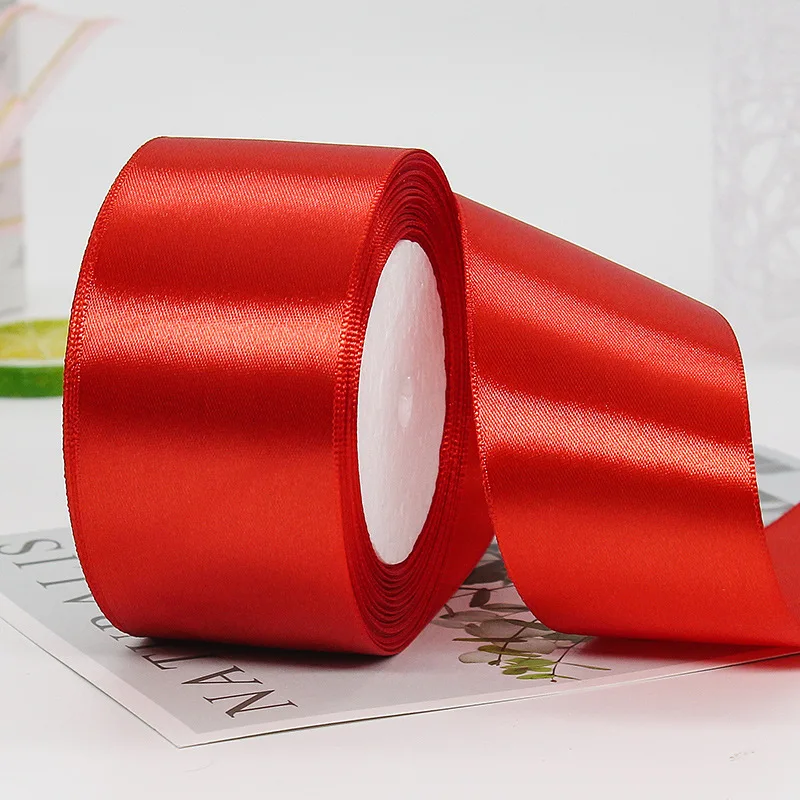 Атласная оберточная лента длиной 44 метра, 5 см, синяя, красная, белая, зеленая лента для упаковки подарков, идеальная кружевная отделка для вышивки ленты для волос