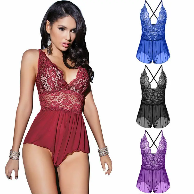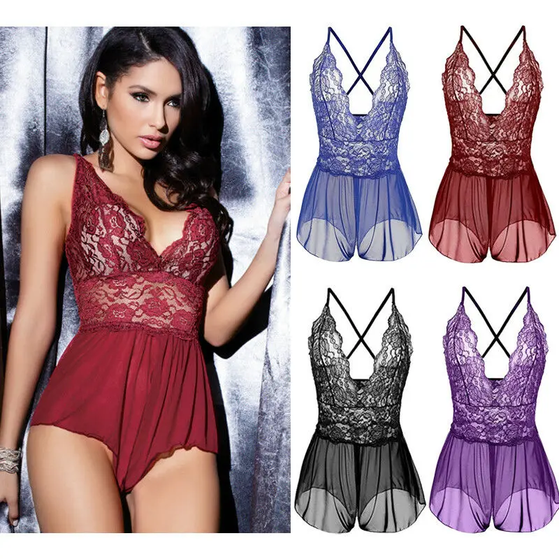Женское кружевное нижнее белье с V-образным вырезом, комбинезон, ночное белье, накидка для бикини без рукавов