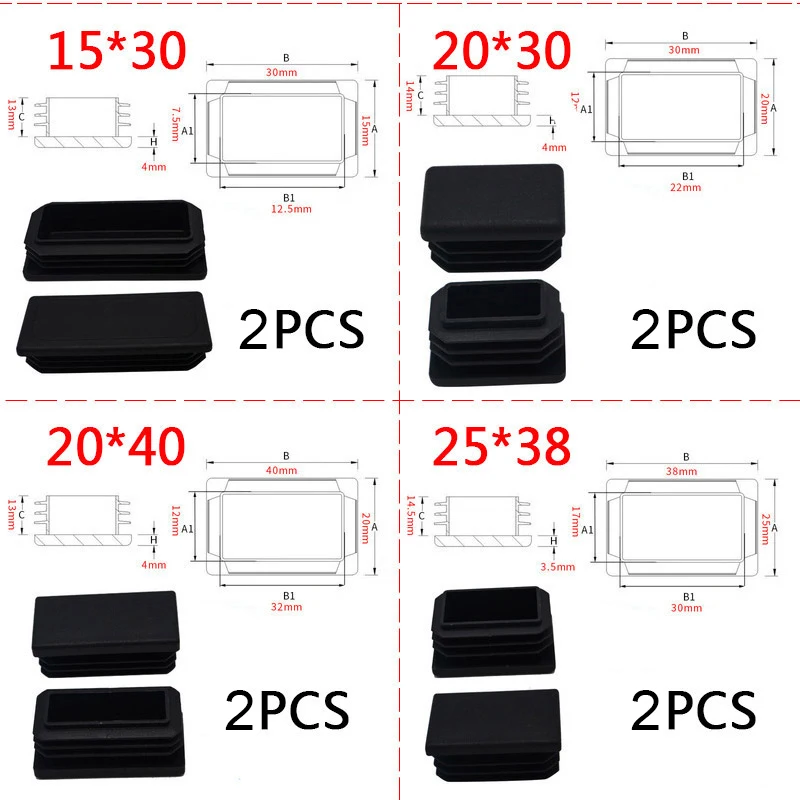 Пластиковая стальная прямоугольная труба, черная заглушка для ножек...