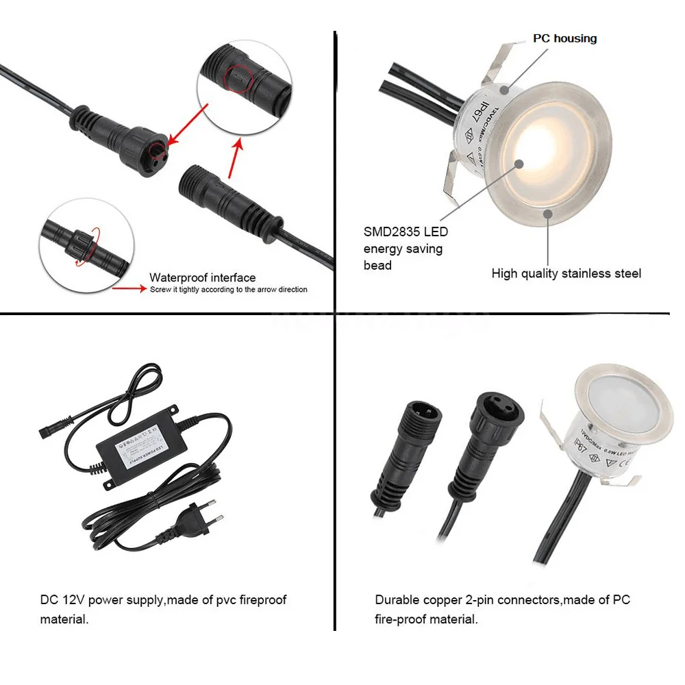 Характеристика:1) Мини Размеры дизайн: 32 мм (1,25 дюймов) x H22mm (0,8 дюймов) Мини Размеры s, которые могут светильник на данный момент двор2) Энергосбережение и дизайн окружающей среды: работа с 12 вольтами (низкое напряжение) постоянного тока, энергосбережение и экологичность.3) съемное и параллельное подключение: 10 шт. ламп являются съемными и параллельными, вы можете установить их только в соответствии с вашими потребностями.4) гарантия безопасности: светодиодный светильник IP67 водонепроницаемый, безопасный для использования в помещении и на улице5) в основном используется: квадраты, шкафы, углы, потолки, коридоры, сады, террасы, дворы, ступени, палубы корабля и другие украшения и украшения.Характеристики:Название продукта: светодиодный светильникШина: Материал: нержавеющая сталь + ПоликарбонатТип светодиодный: SMD2835Цветовая температура: RGBАдаптер: вилка-США/ЕС/Великобритания/АвстралияВход: AC90-264V 50 / 60HZВыход: DC12VМощность: 0,6 Вт/шт.Световой поток: 50-80 лм/светильникСрок службы: более 50000 часовВодонепроницаемость: IP67 водонепроницаемыйРазмер одиночной лампы: 32 32*22*2222 ммДлина кабеля: 100 см/39,4 дюйма (на светильник)Длина вилки: 3 мПримечание: Если вы покупаете товар «только 1 шт. светильник», вы получаете только 1 шт. напольный светильник, не включайте разъем питания1 шт. штепсельная вилка макс может управлять 20 шт. лампамиПосылка:Светильник-1 шт. = напольный светильник-1 шт., штепсельная вилка-не входит в комплект поставки6 шт. EU/UK/US/AU набор = 6 шт. палубные огни + 1 шт. адаптер питания + пульт дистанционного управления + комплект установки10 шт. EU/UK/US/AU набор = 10 шт. колоды + 1 шт. адаптер питания + пульт дистанционного управления + комплект установки