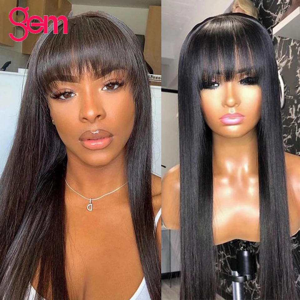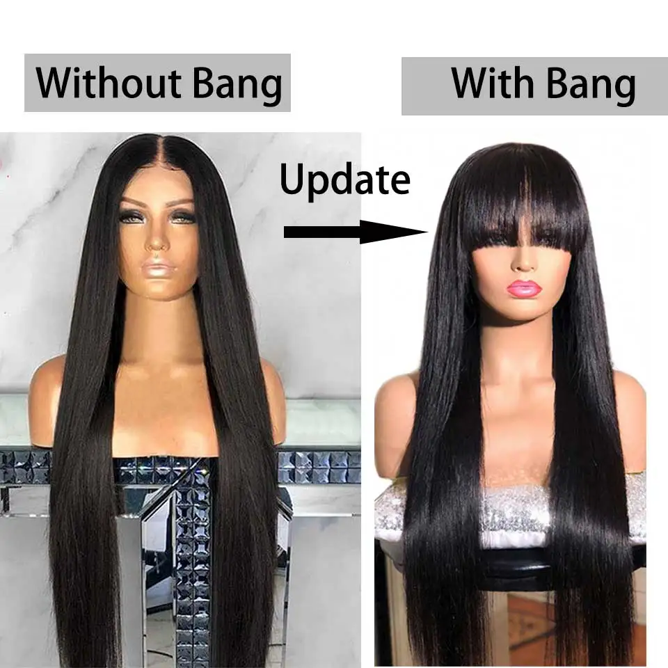 Парик из человеческих волос с челкой, 28 Дюймов, 30 дюймов, парик из перуанских волос с драгоценными камнями, парик для чернокожих женщин, прямой парик из человеческих волос с челкой