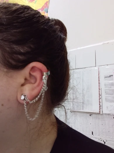 Все как в описании, как на картинках, единственное что держится не очень крепко и перекручивается постоянно... Буду ходить и придерживать постоянно, боясь потерять или на самый кончик надеть от другой сережки цеплялку, придеться искать масенкую✨ Но выглядит шикарно, на пять звёзд