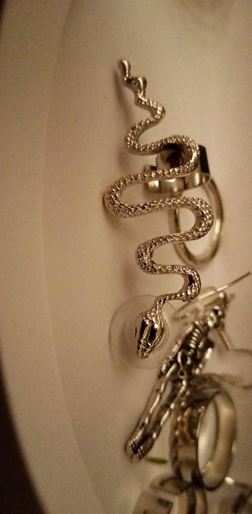 сережка очень понравилась, выглядит круто. сам скелет не металлический а что-то типа пластика или чего-то такого