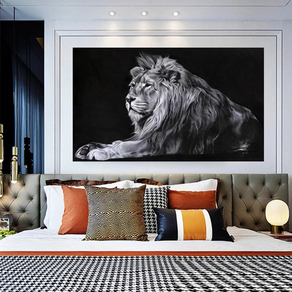 Черно-белые Львы животные Искусство Холст плакат дикий пейзаж живоп...