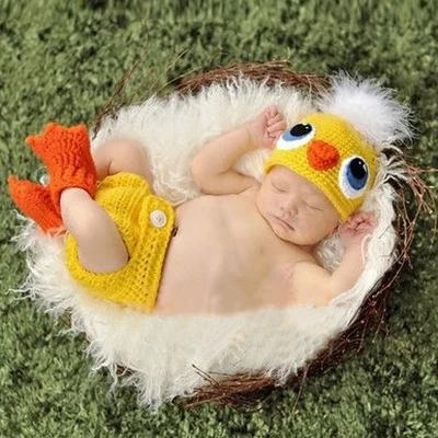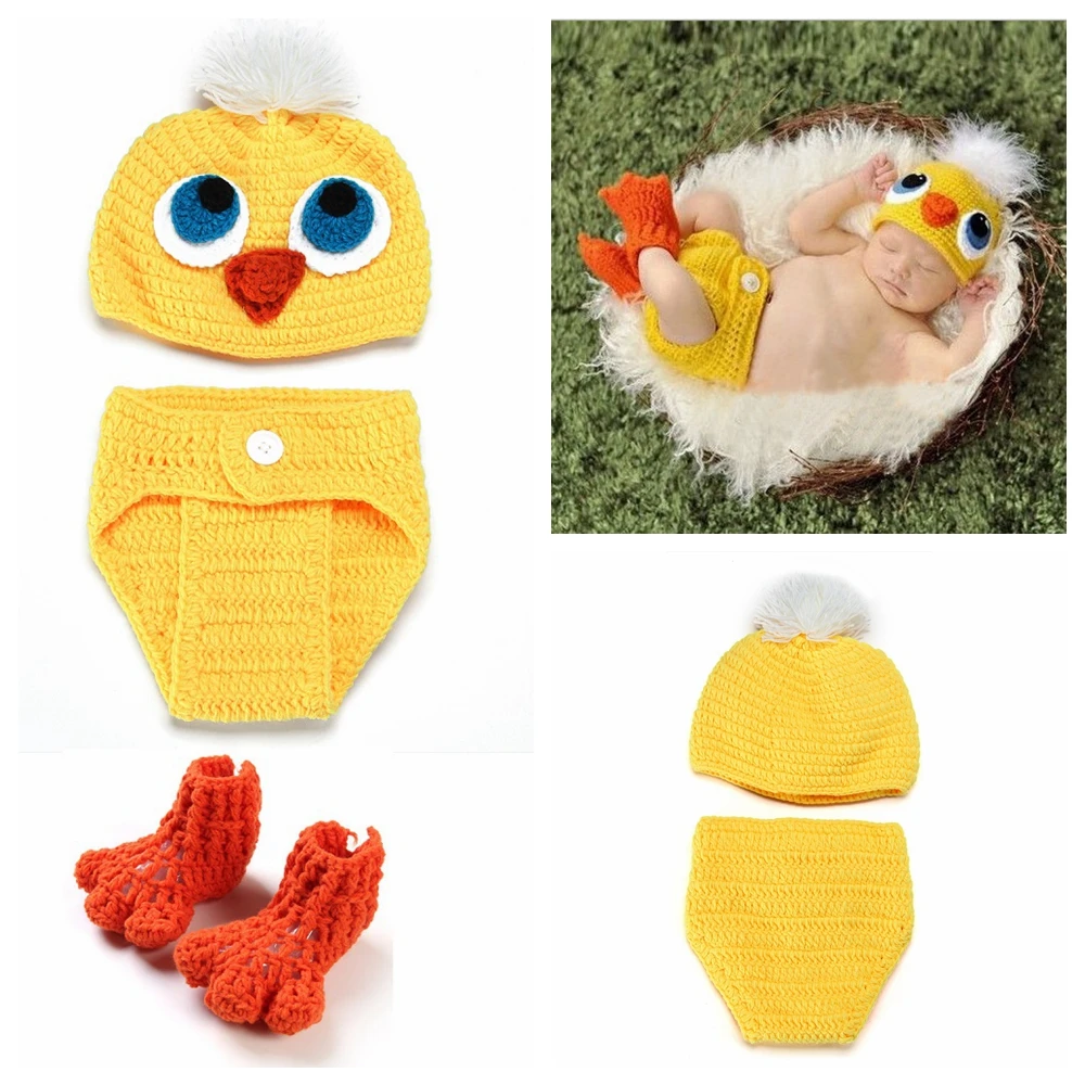 Модный вязаный костюм для новорожденных девочек с изображением маленькой желтой утки, вязаный крючком костюм, реквизит для детской фотографии, аксессуары для одежды