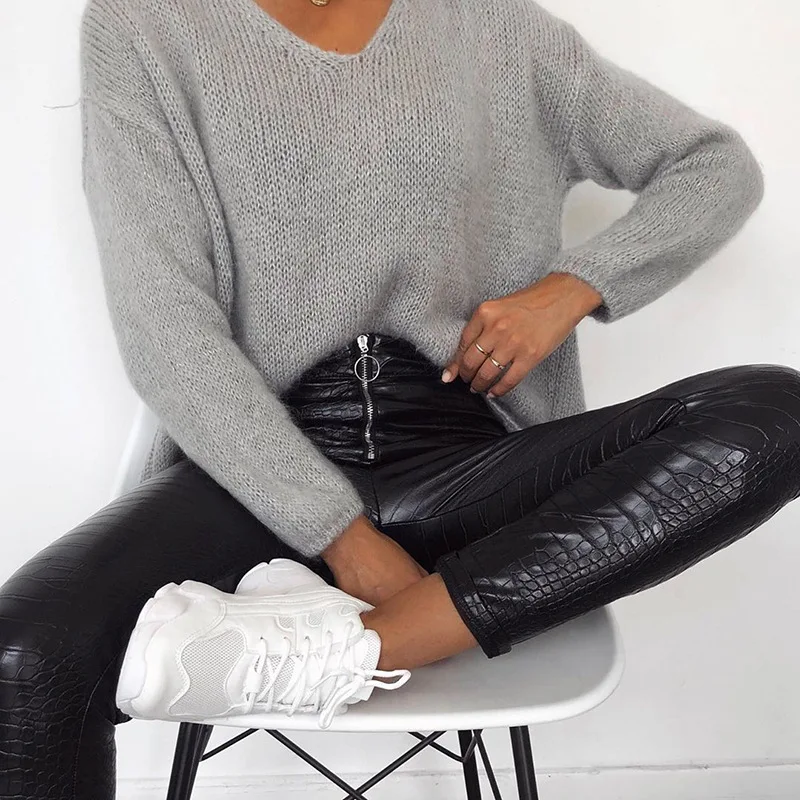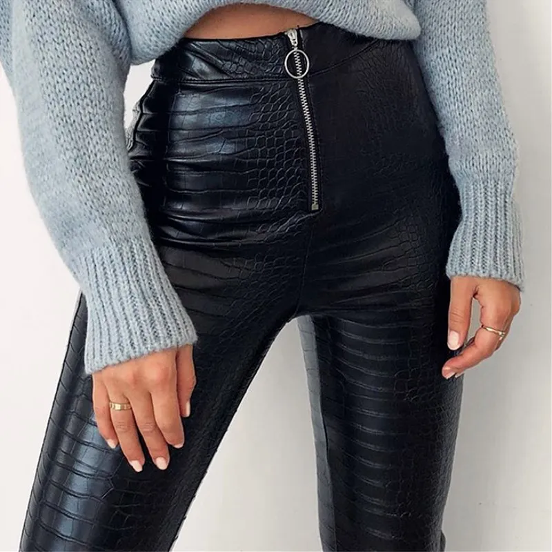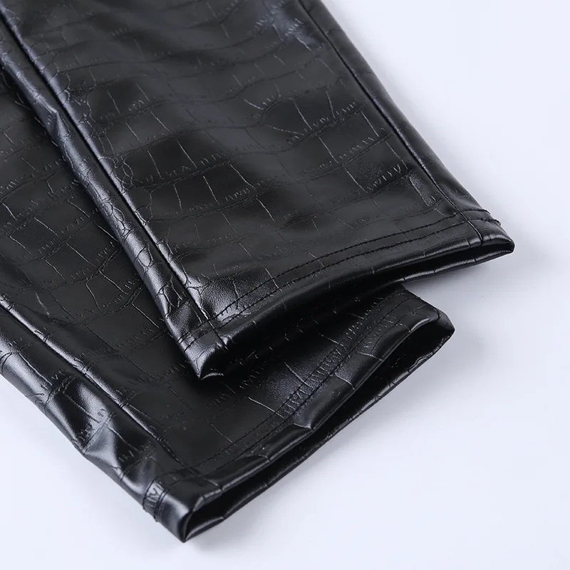 Брюки с высокой талией из крокодиловой кожи, осень и зима, облегающ...