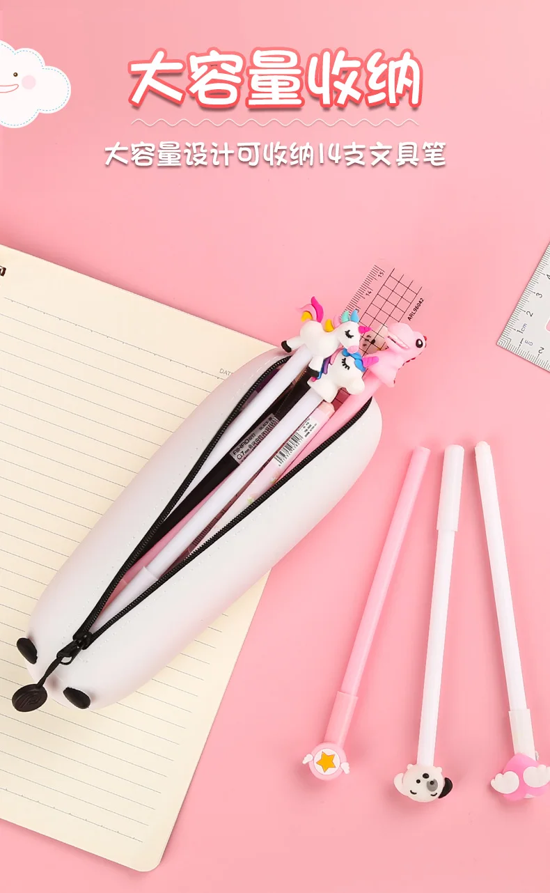 Пенал для ручек и карандашей, силикагелевый большой чехол с надписью, подарок для девочек, школьные принадлежности, корейские Канцтовары