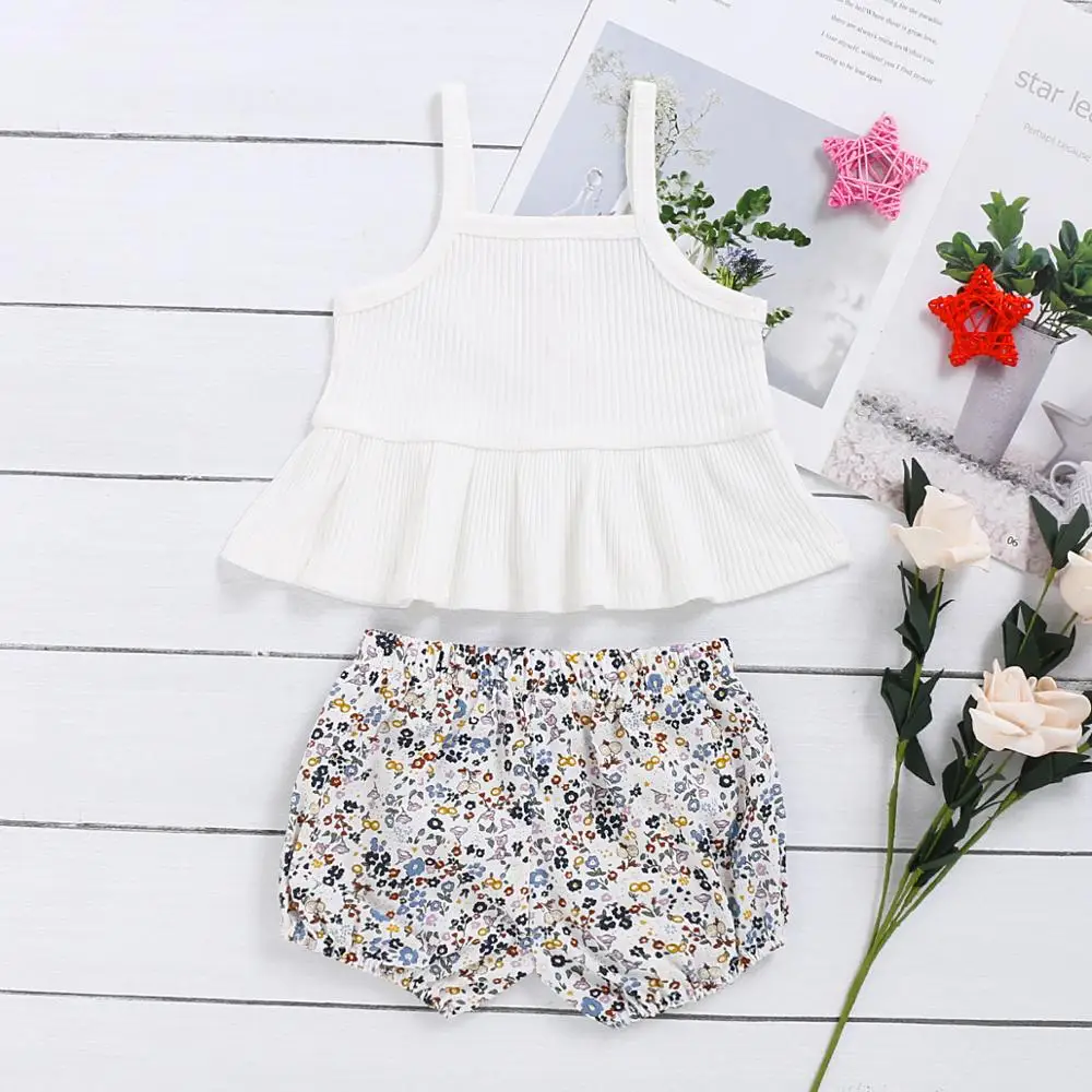 Летний комплект для маленьких девочек, 2 предмета, Одежда для новорожденных девочек, футболка, жилет, топы, шорты, штаны