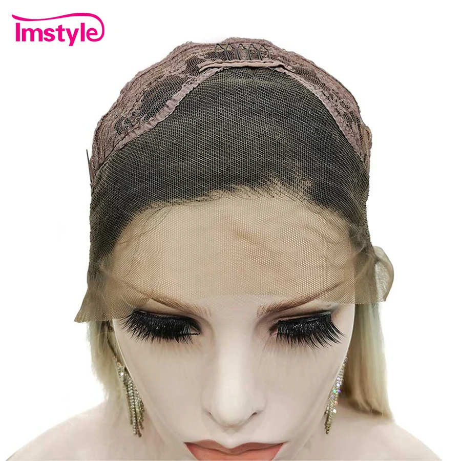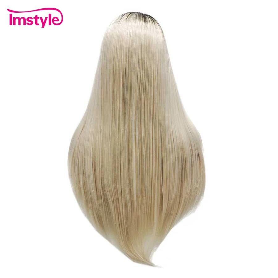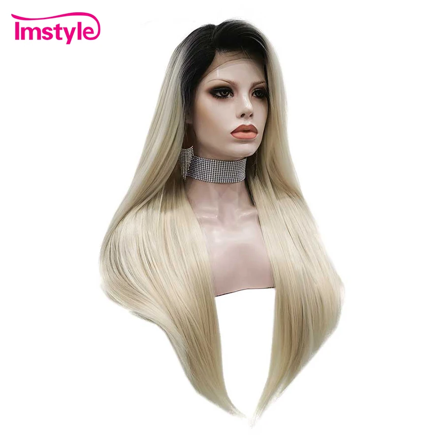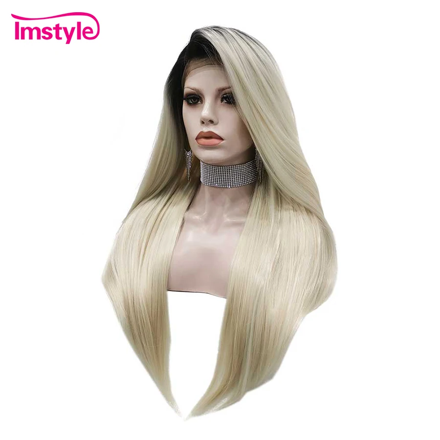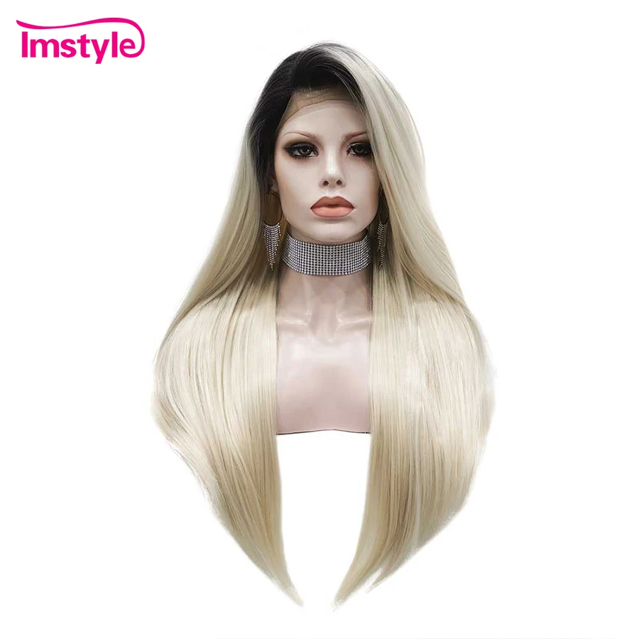 Imstyle Ombre светлые парики прямые синтетические кружевные передние парики черный корень Термостойкое волокно парики на каждый день для женщин